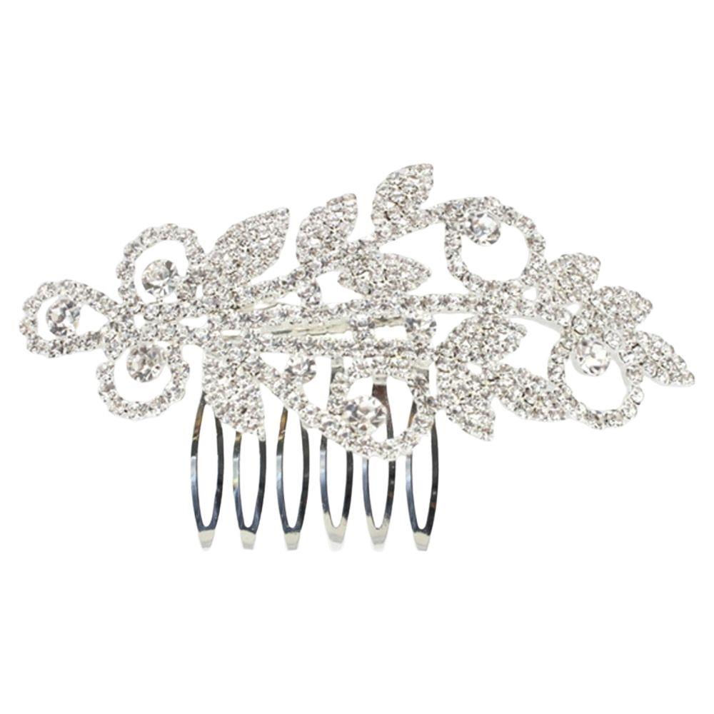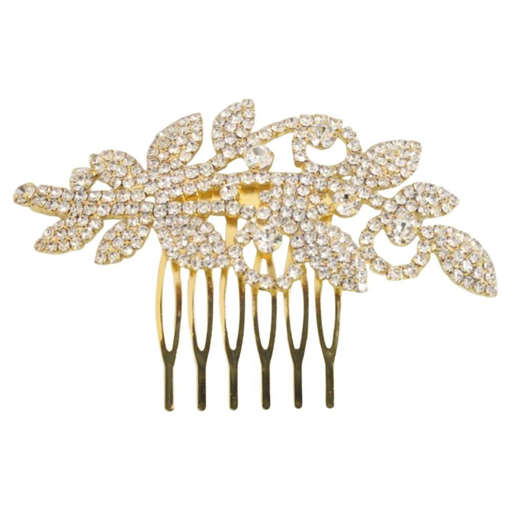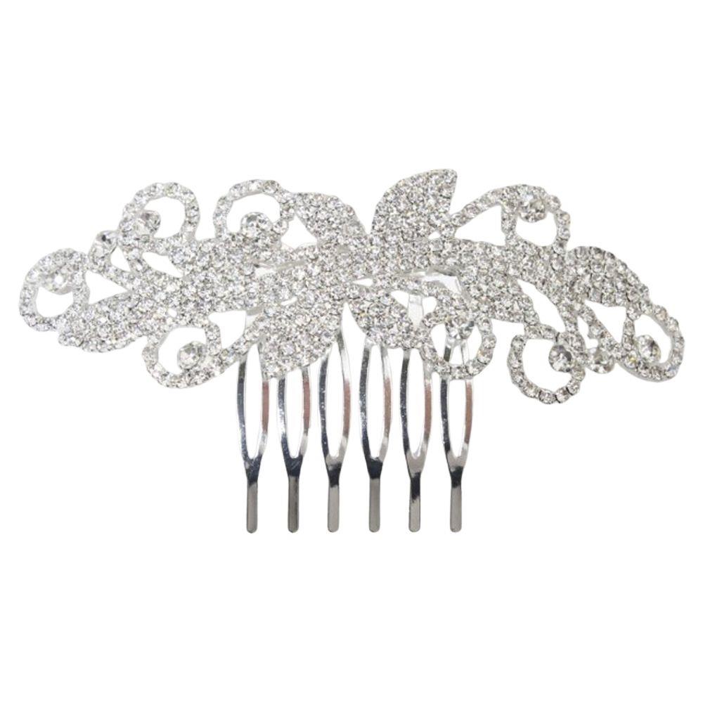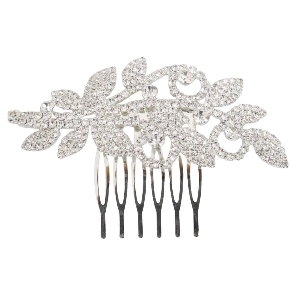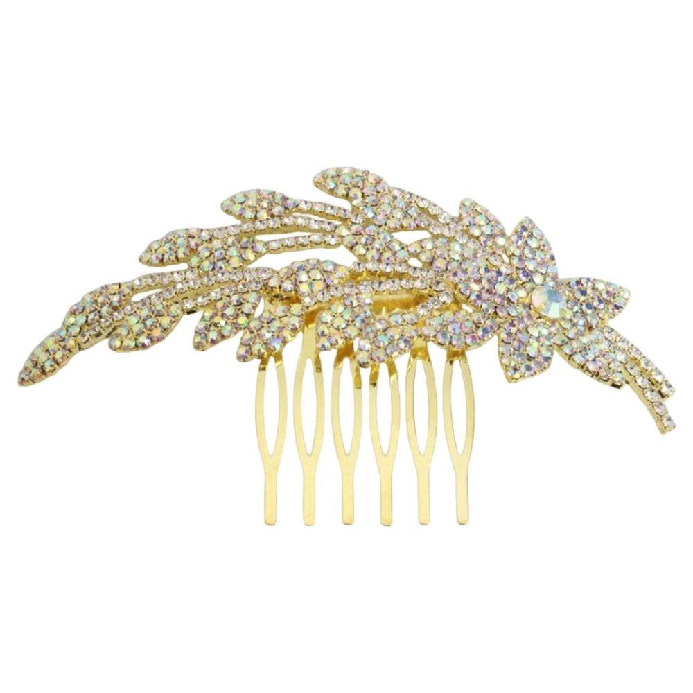CUBIC ZIRCONIA FLORAL LEAF HAIR COMB