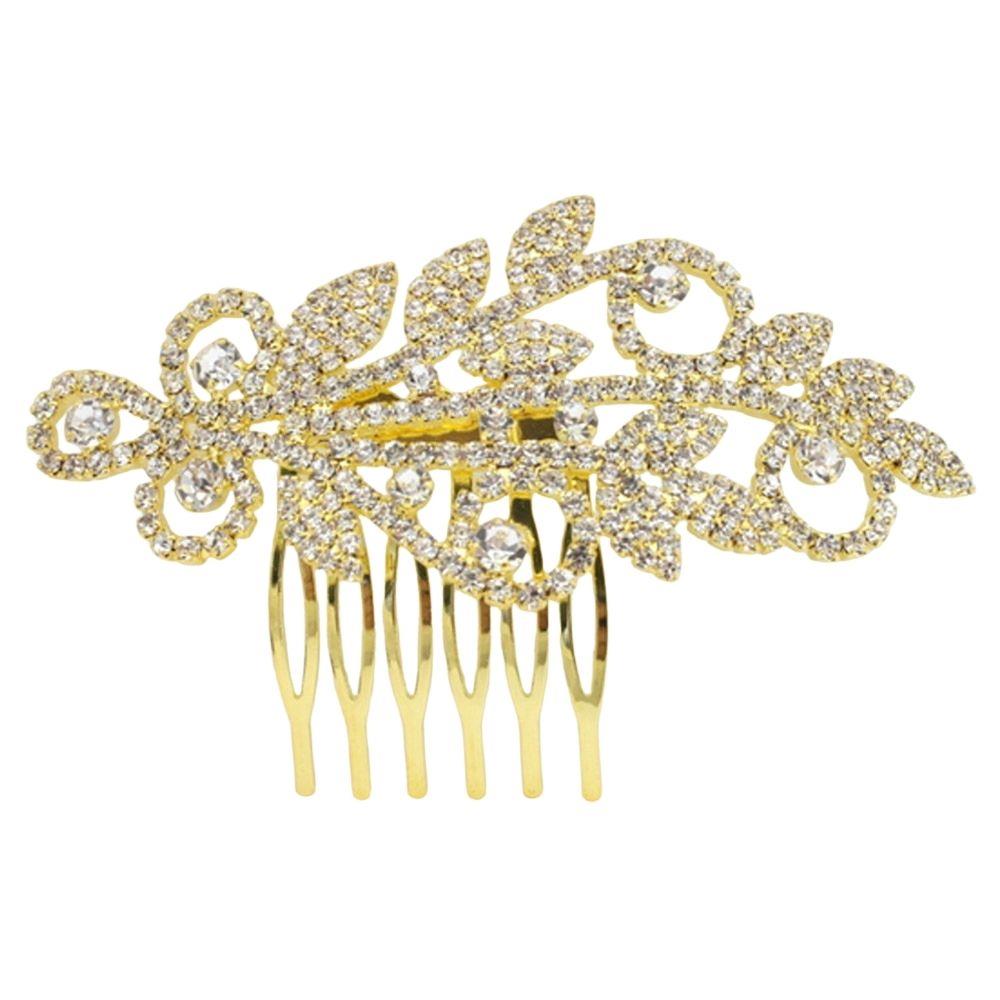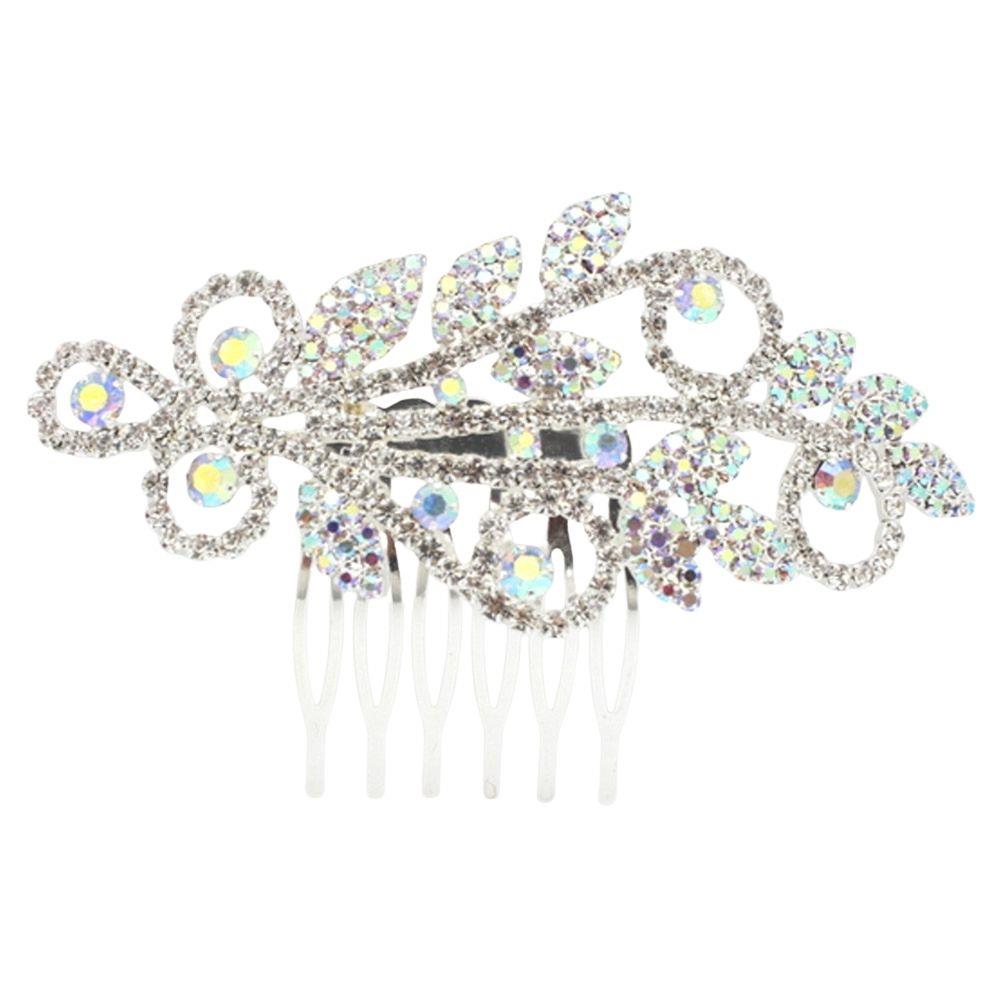 CUBIC ZIRCONIA STONE LEAF HAIR COMB