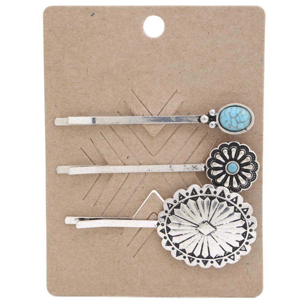 WESTERN STYLE TURQUOISE BEAD HAIR CLIP SET