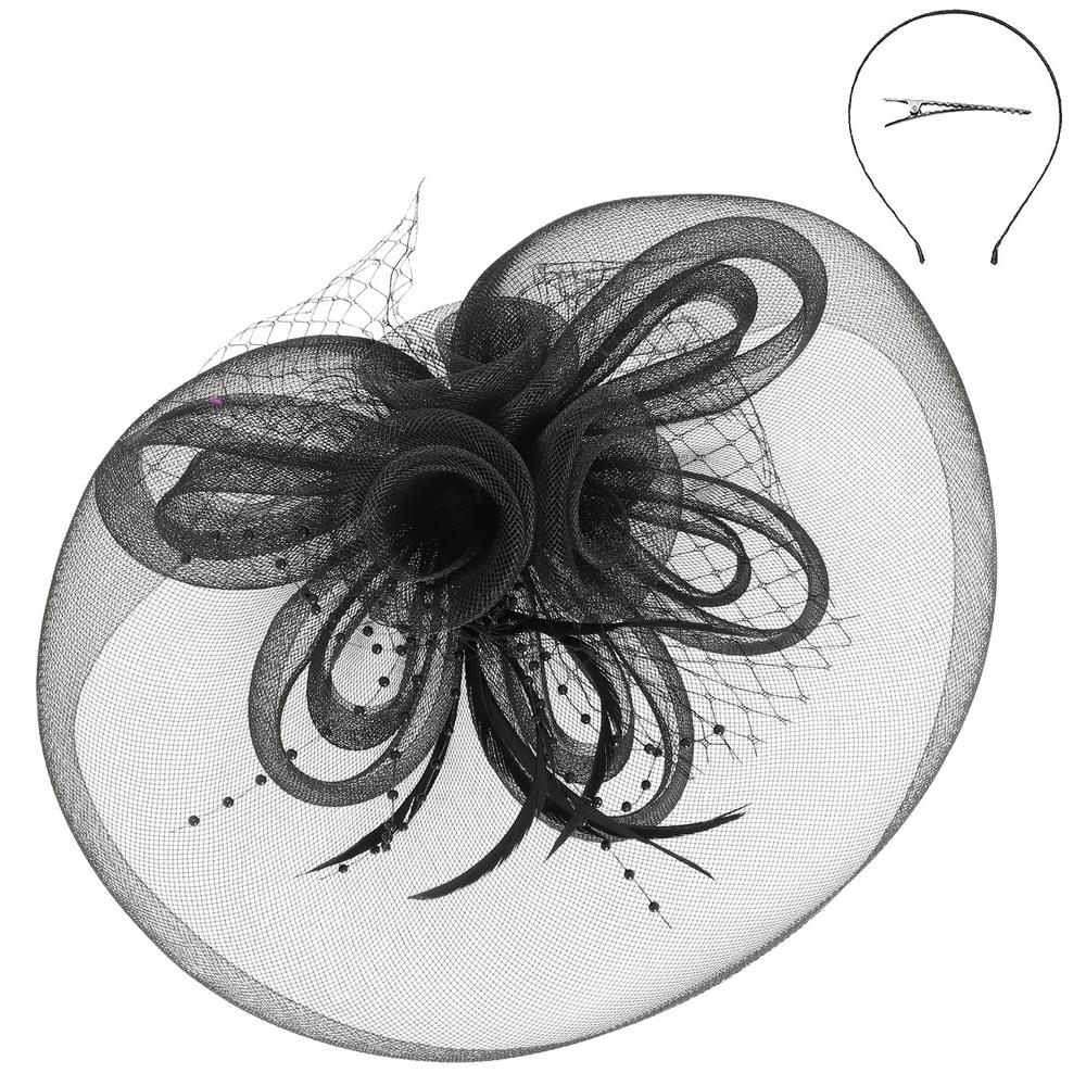 BLACK POPULAR DRESSY FASCINATOR WITH FLORAL CENTER