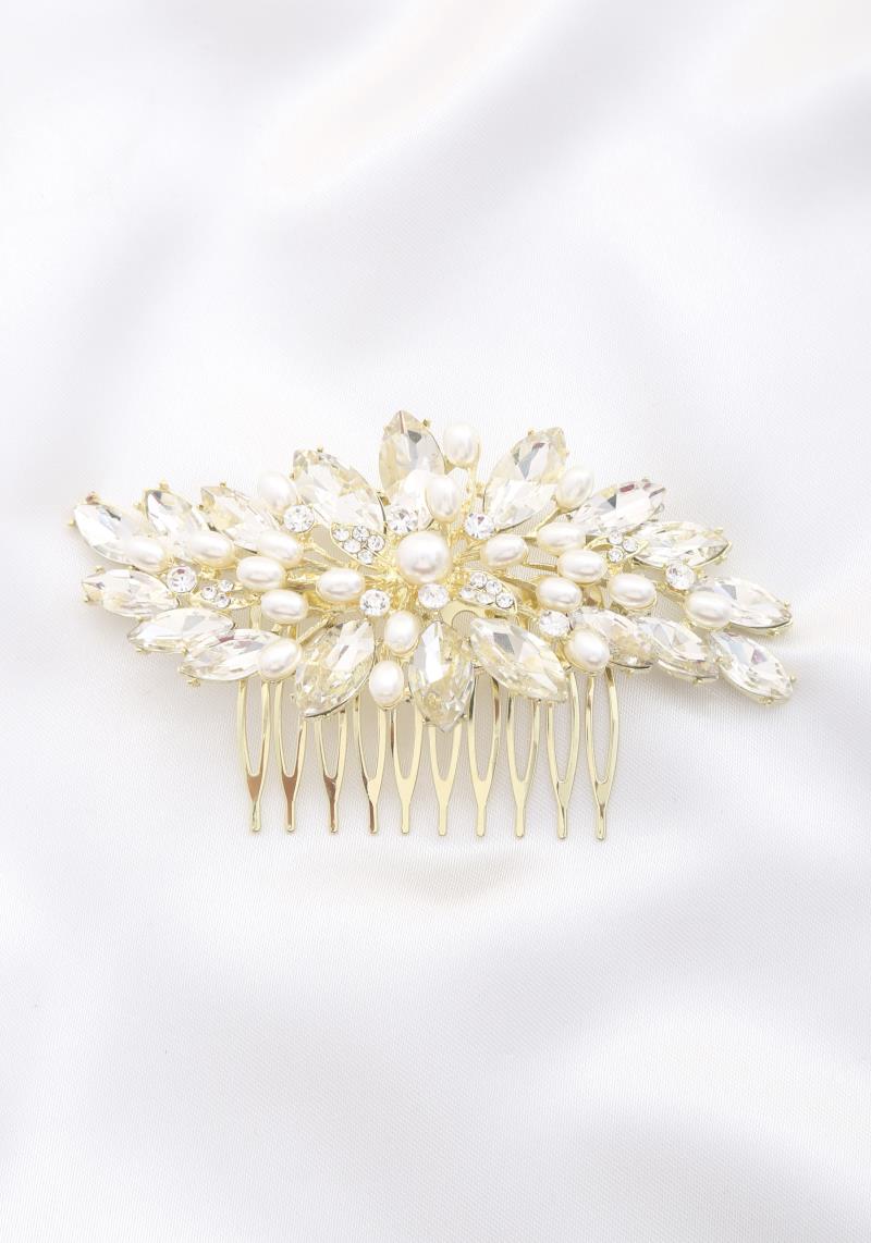 RHINESTONE BOUQUET PEARL HAIR COMB