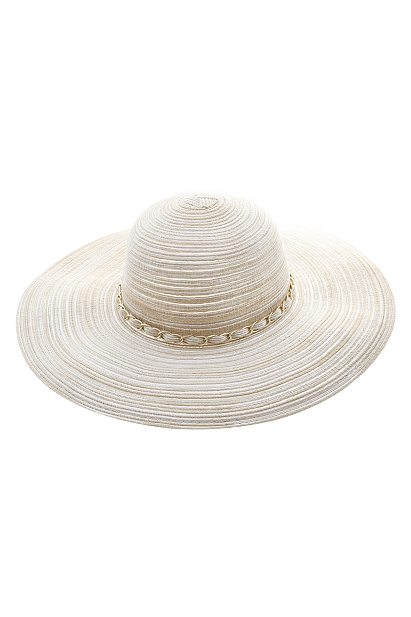 CC WIDE BRIM SUN HAT WITH SHELL & BEAD TRIM BAND
