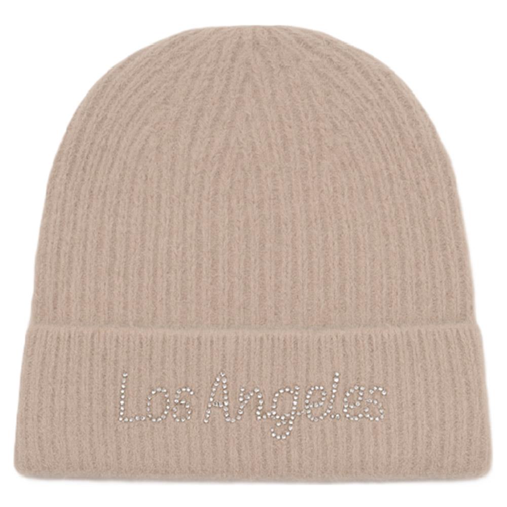RHINESTONE LOS ANGELES LETTERING KNIT BEANIE HAT