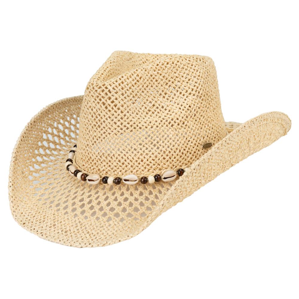 CC PAPER COWBOY HAT WITH SEASHELL AND BEAD BAND
