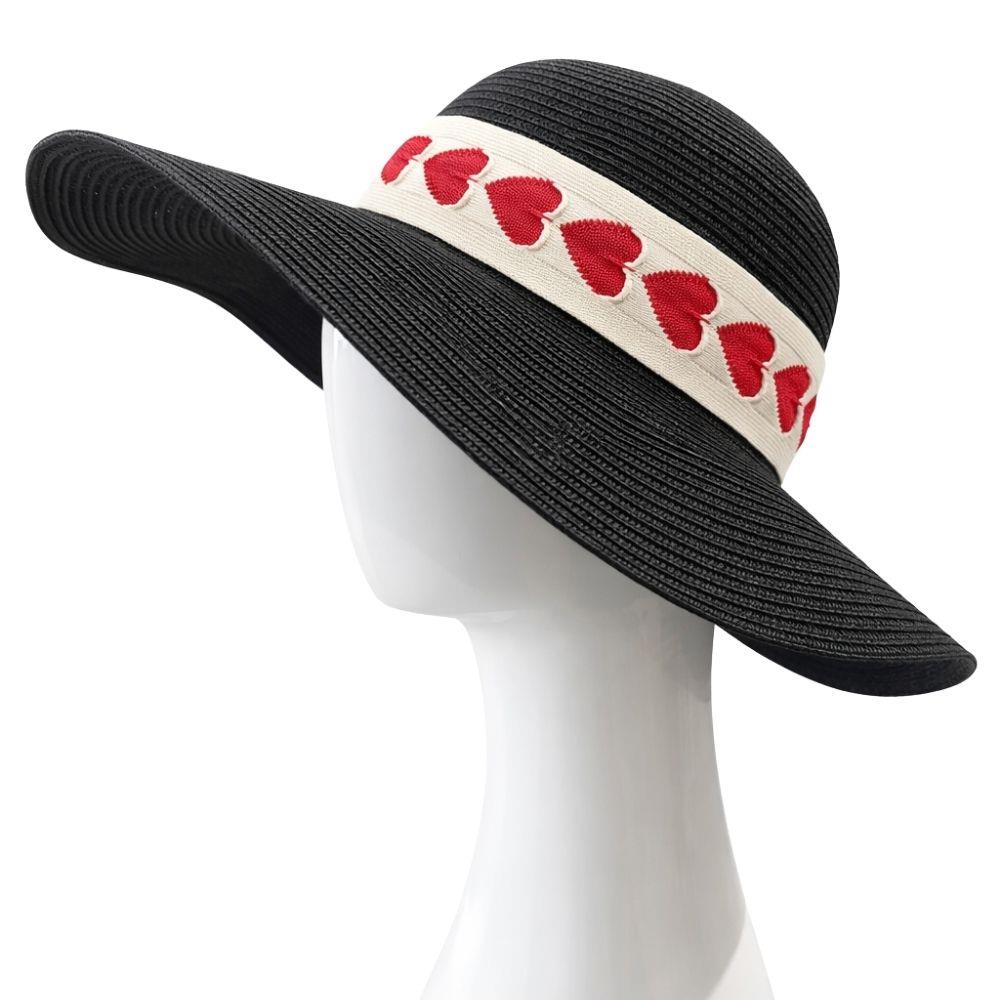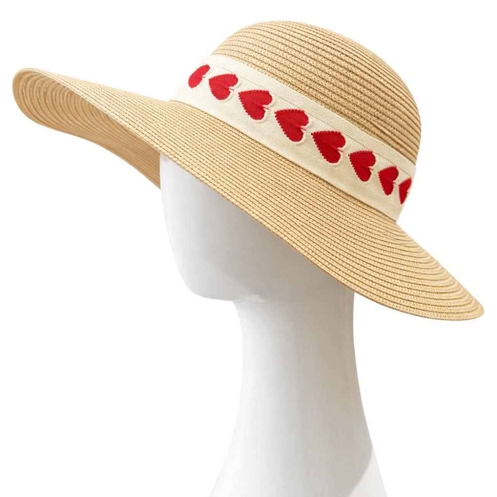 STRAW HEART BAND SUN FLOPPY HAT