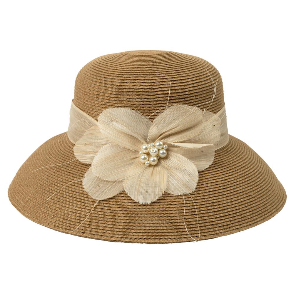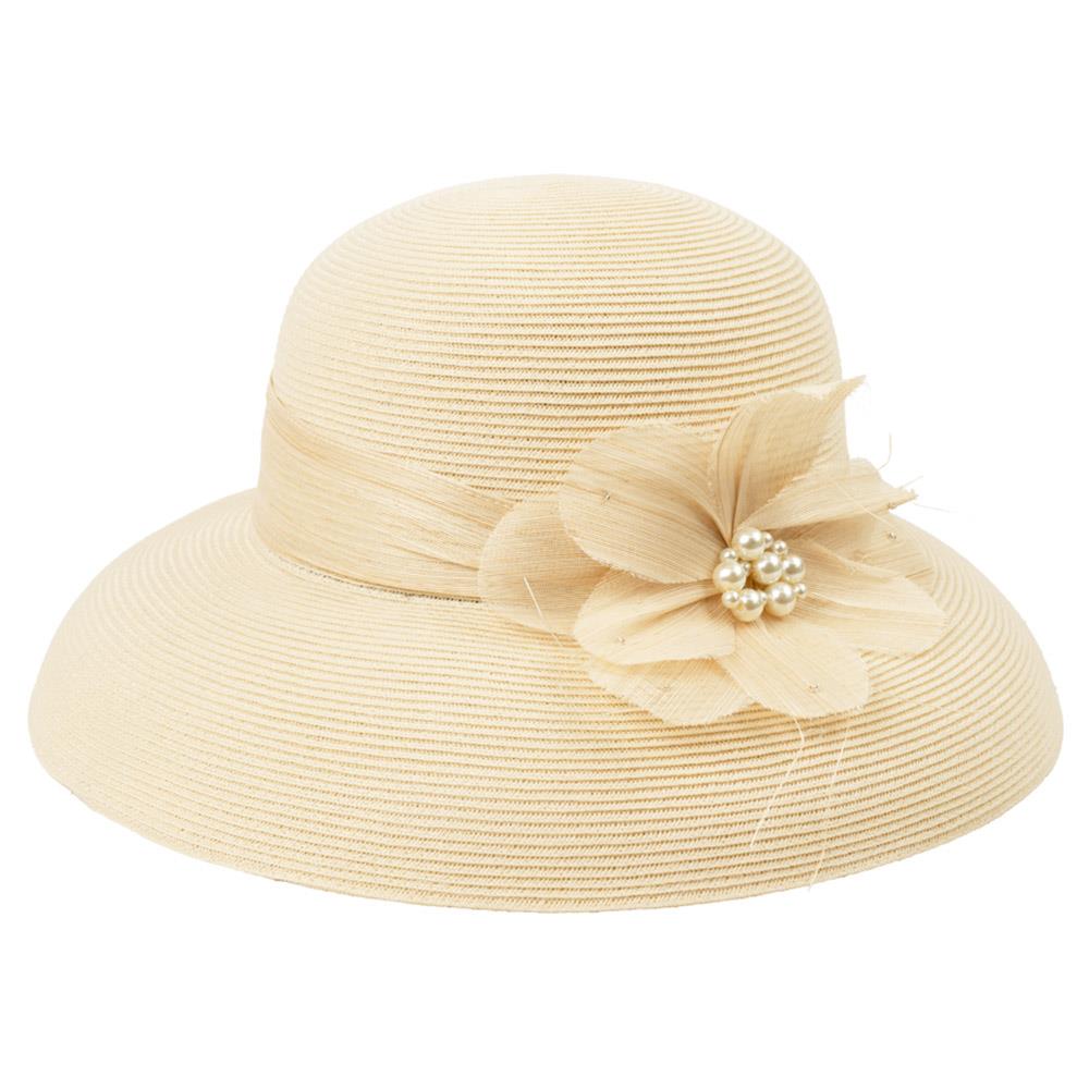 CC WIDE BRIM SUN HAT WITH PEARL TRIM BAND