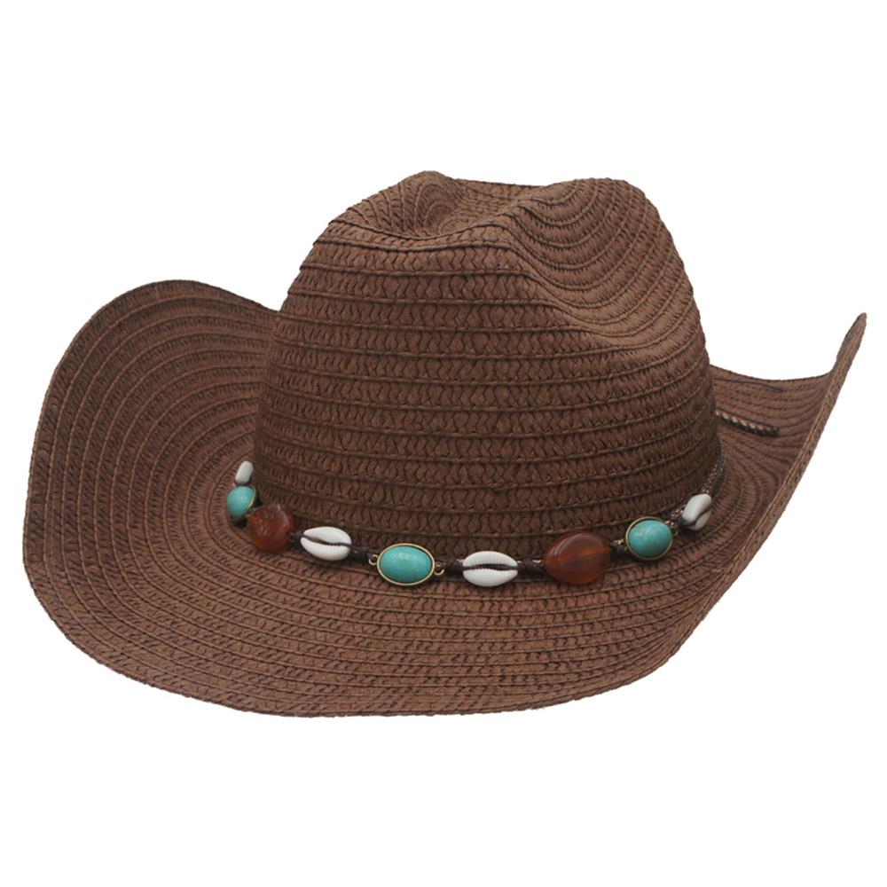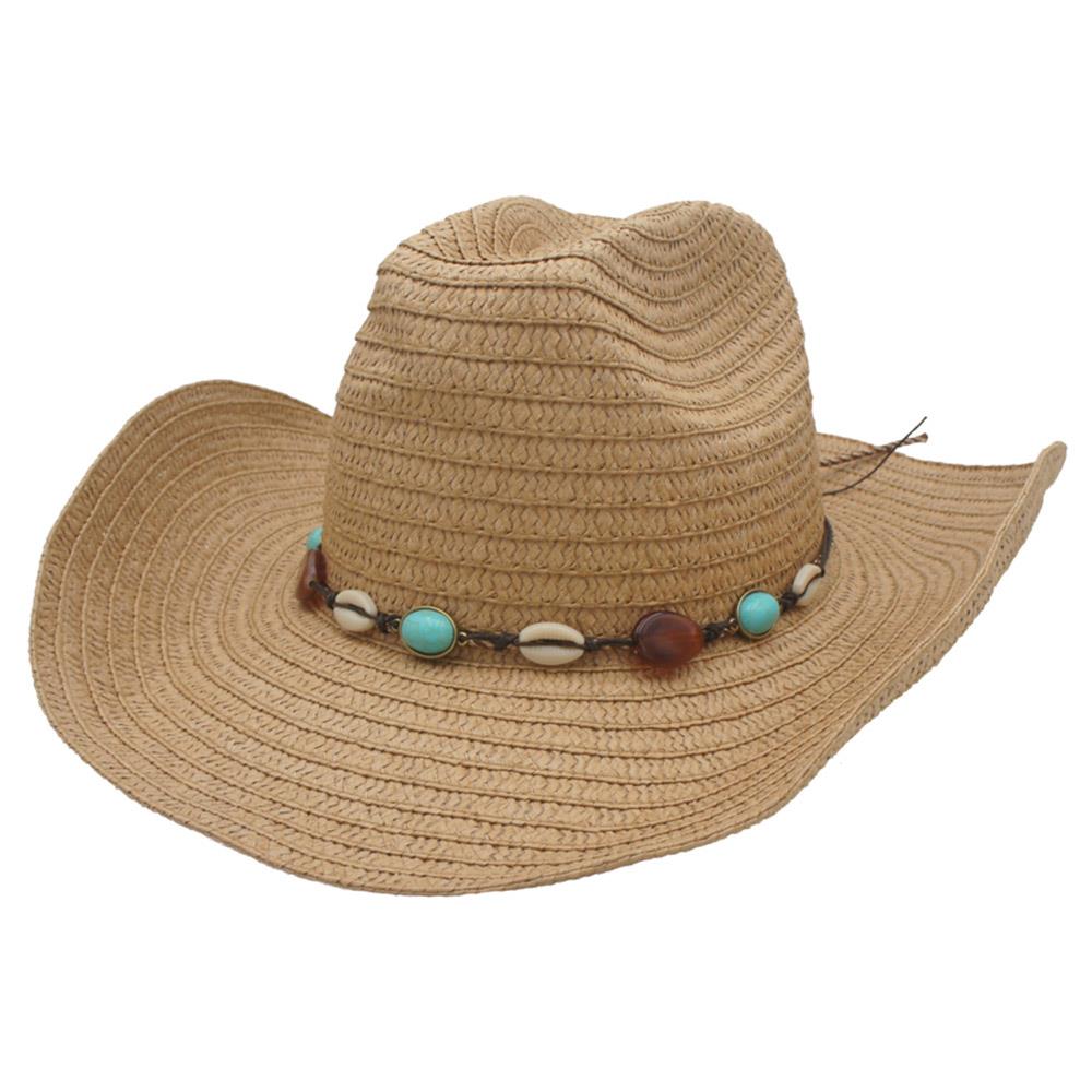 BEADED BAND OPEN WEAVE STRAW COWBOY HAT