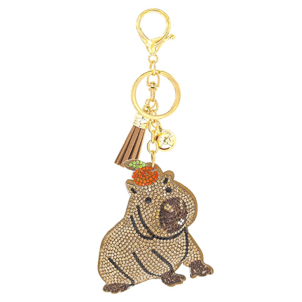 RHINESTONE DOG BAG CHARM KEYCHAIN WITH TASSEL