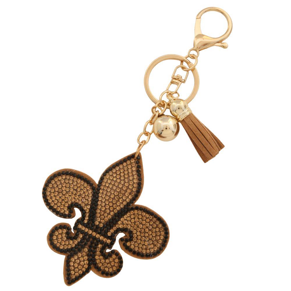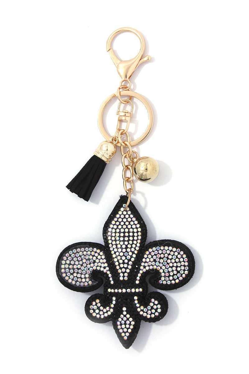 RHINESTONE FLEUR DE LIS KEYCHAIN WITH TASSEL