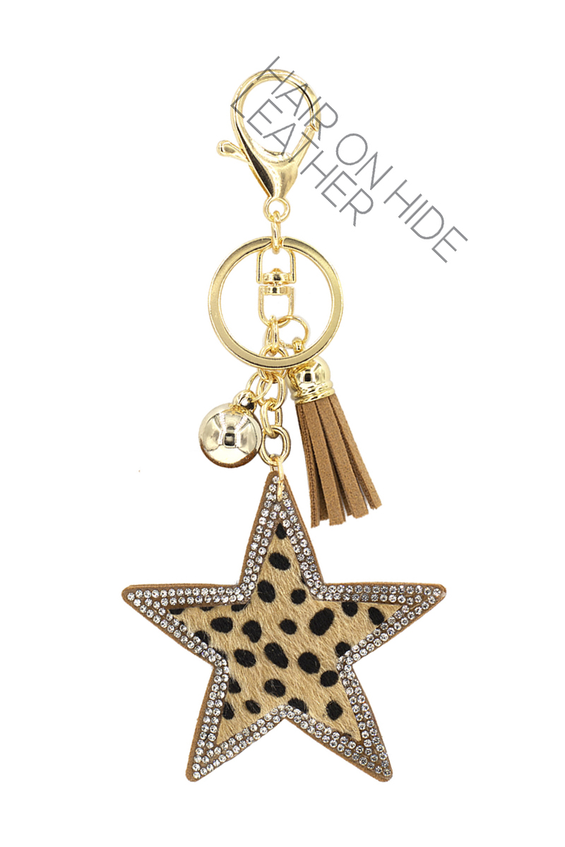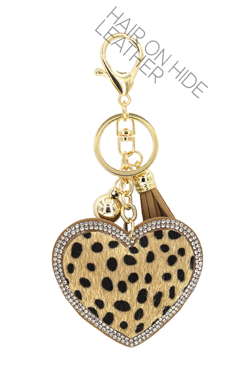 LEOPARD PRINT CROSS LEATHER KEY CHAIN