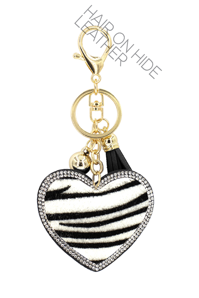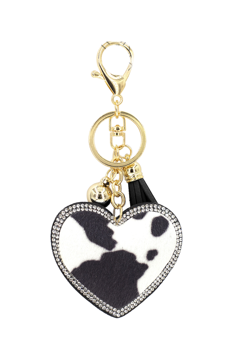 RHINESTONE YELLOW HEART KEYCHAIN WITH TASSEL