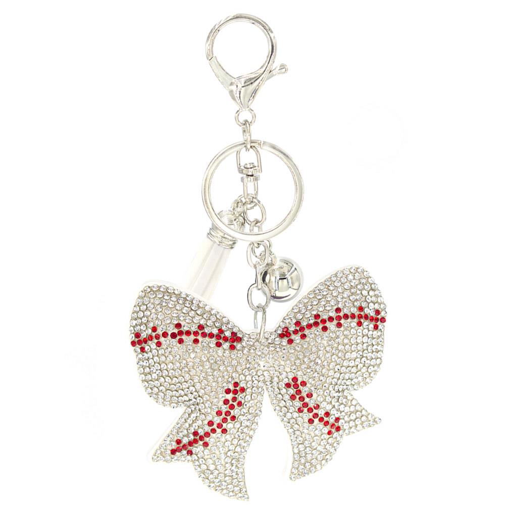 RHINESTONE BASEBALL BOW KEYCHAIN WITH TASSEL