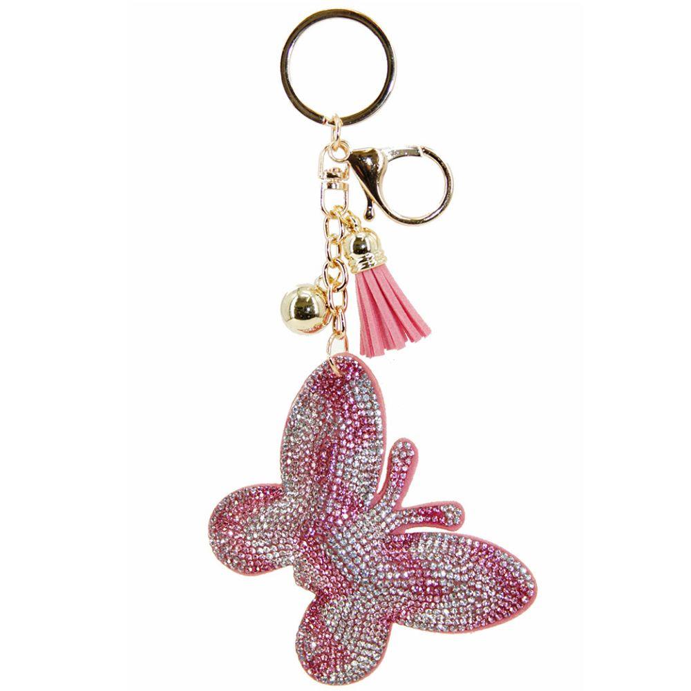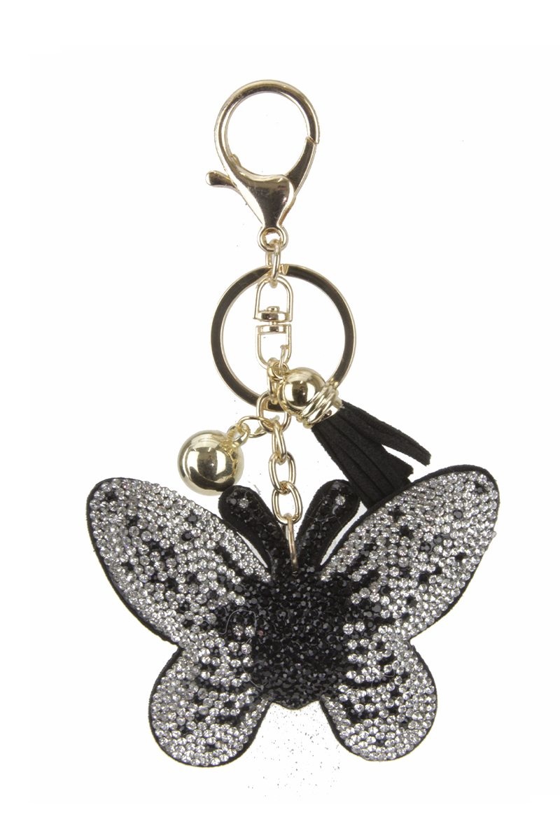 RHINESTONE BUTTERFLY KEYCHAIN WITH TASSEL