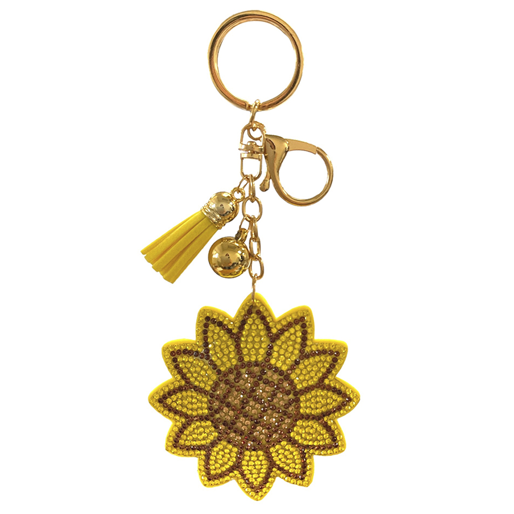 RHINESTONE SUNFLOWER KEYCHAIN WITH TASSEL