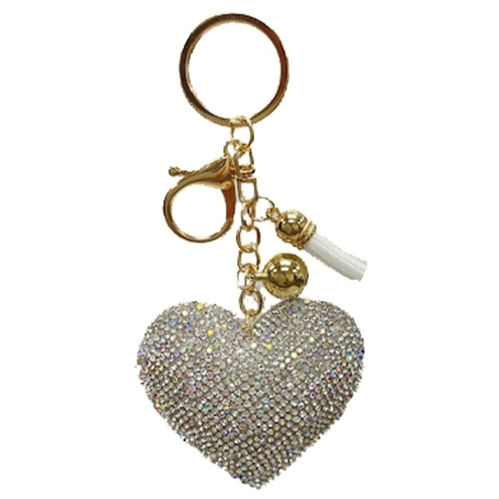RHINESTONE HEART KEYCHAIN WITH TASSEL
