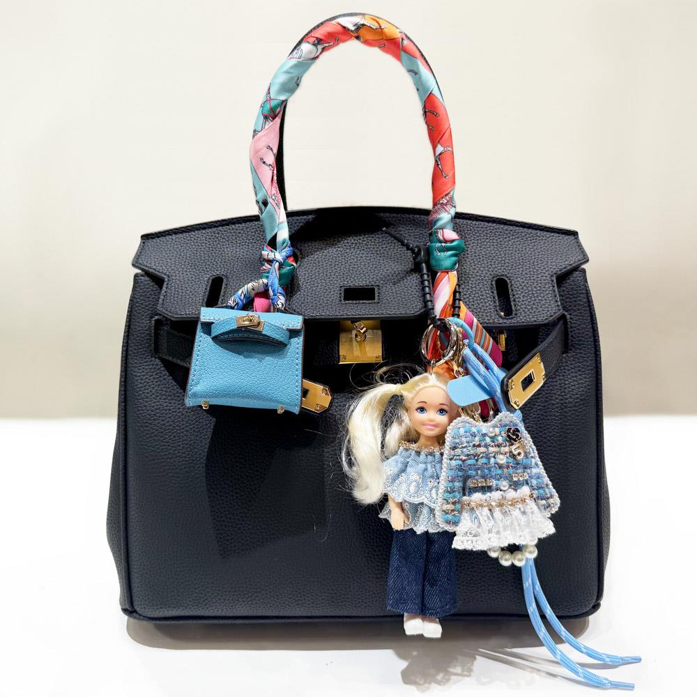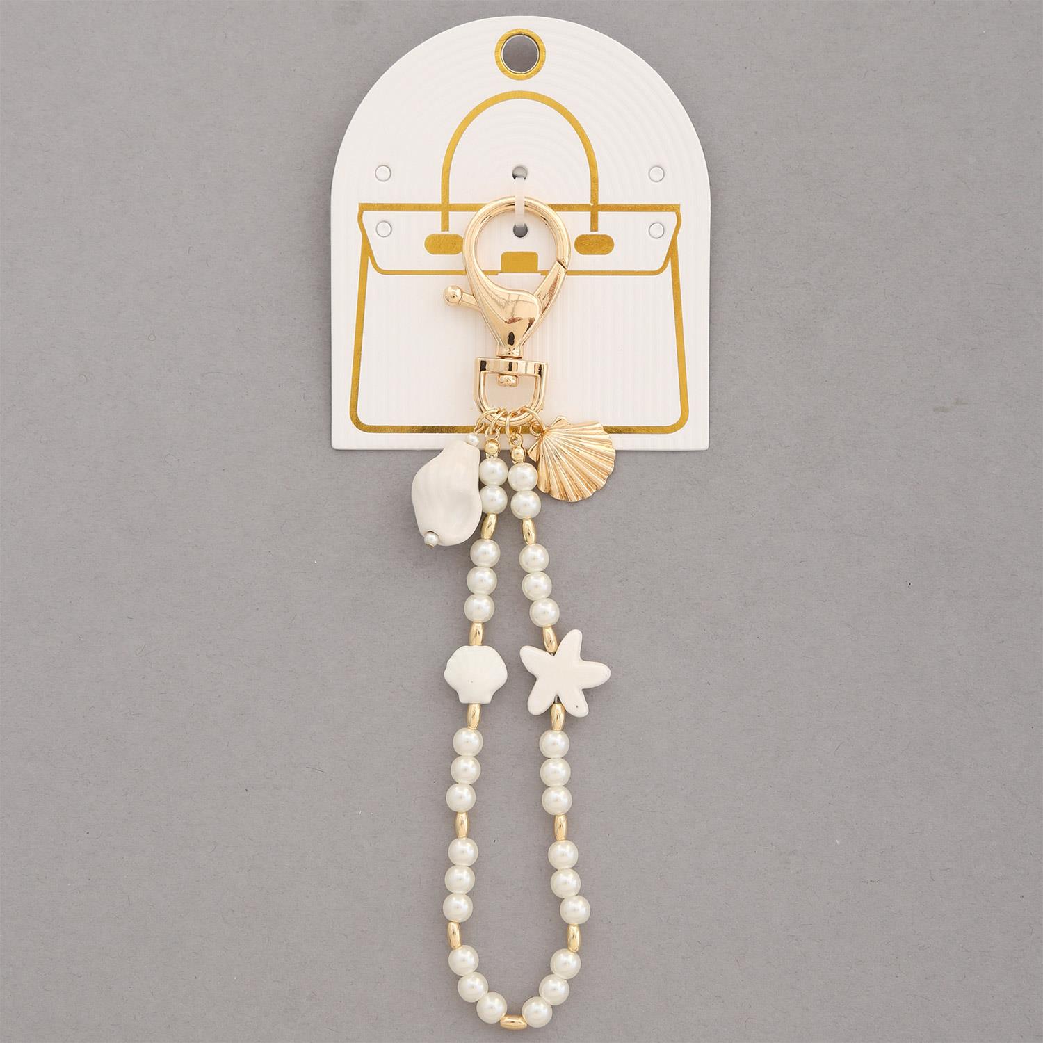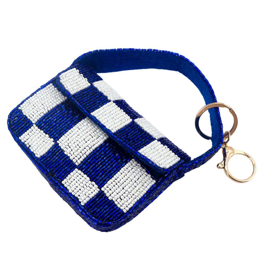 CERAMIC BLUE BEAD BOW BAG CHARM KEYCHAIN