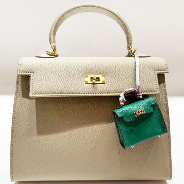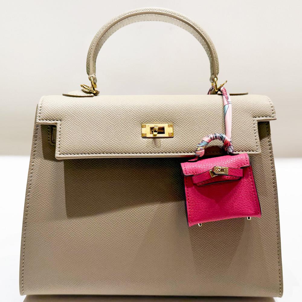 PLUSH WHITE DOG CHECKERED DRESS CHARM BAG CHARM KEYCHAIN