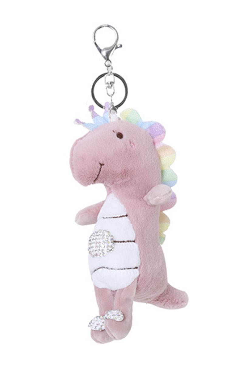 BEAD FLAMINGO FUZZY POM POM TEXTURED PATCH KEYCHAIN