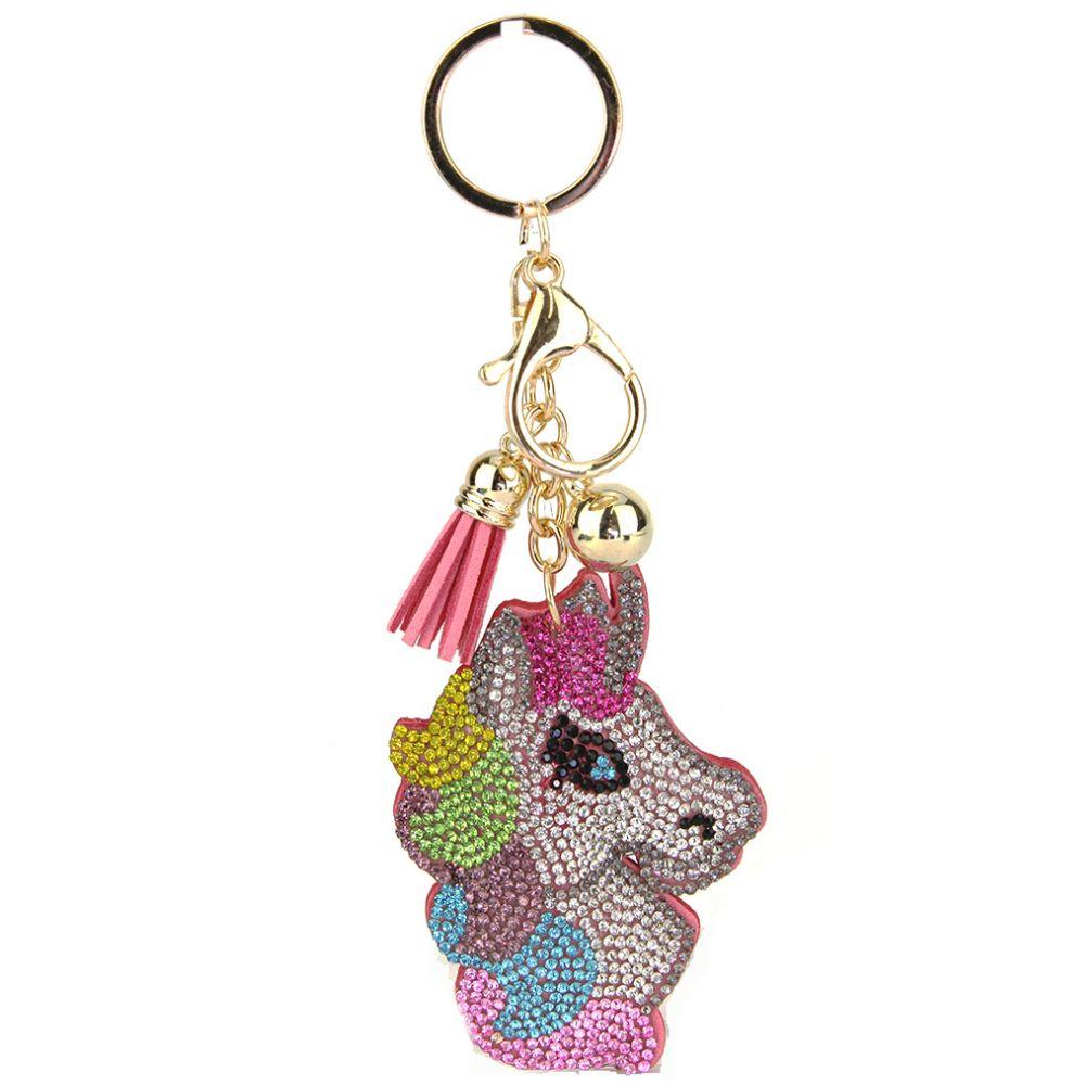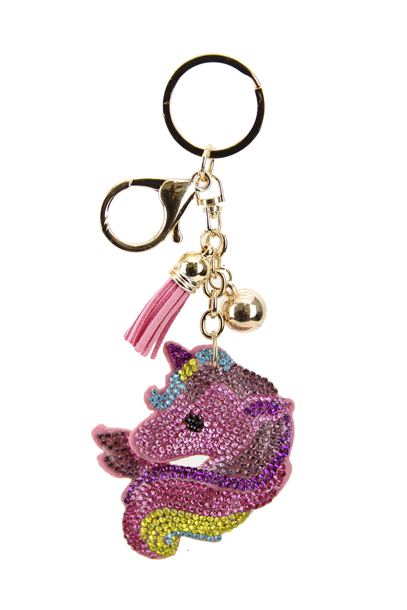 RHINESTONE PIG KEYCHAIN WITH TASSEL