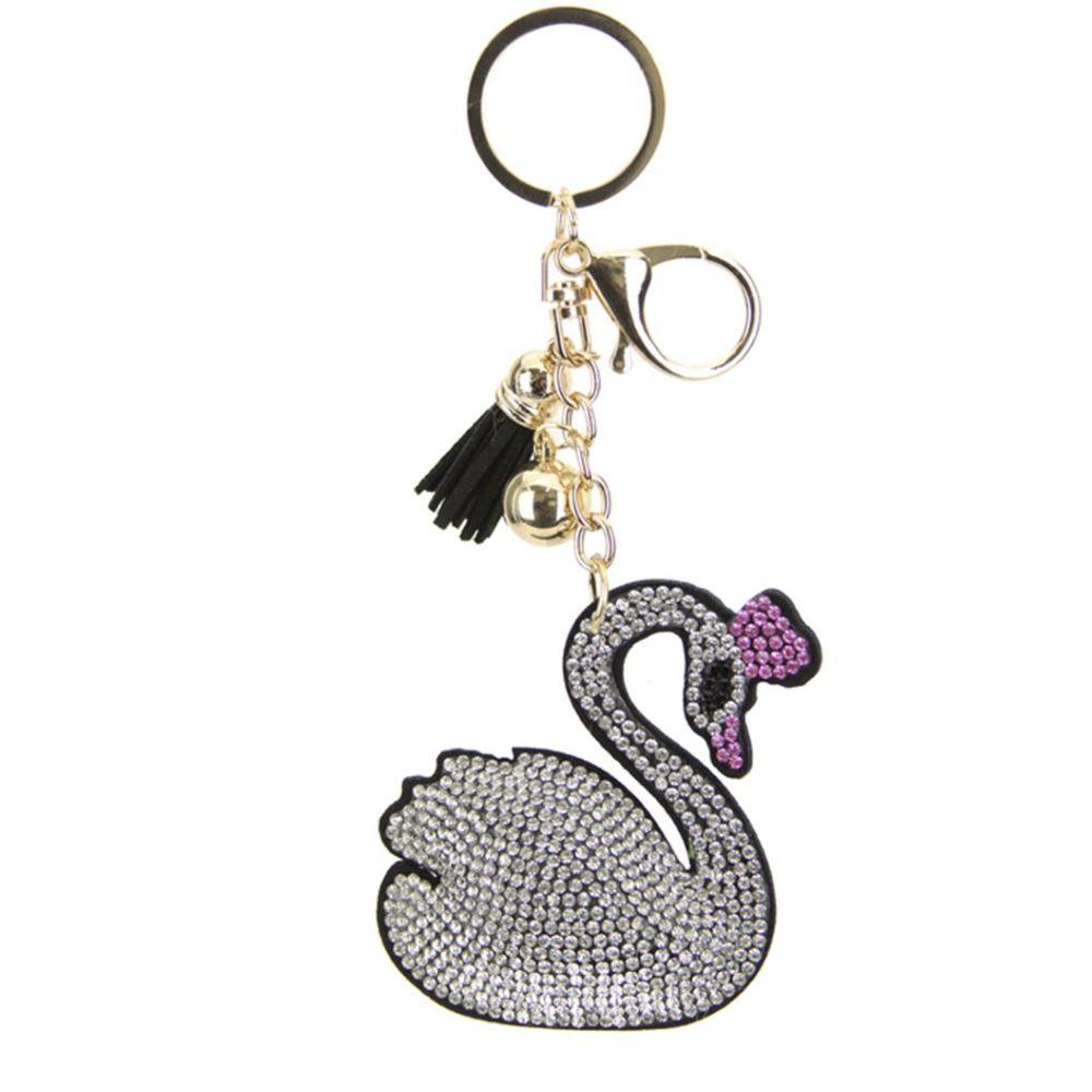 RHINESTONE WHITE DOVE KEYCHAIN WITH TASSEL