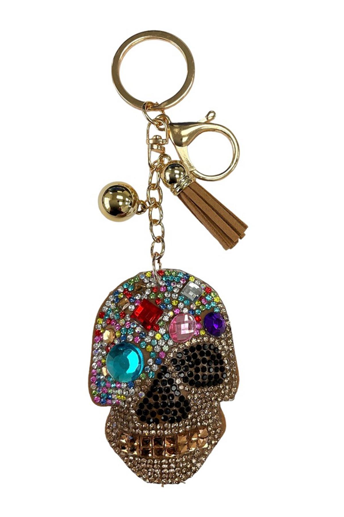 RHINESTONE SUGAR SKULL KEYCHAIN WITH TASSEL
