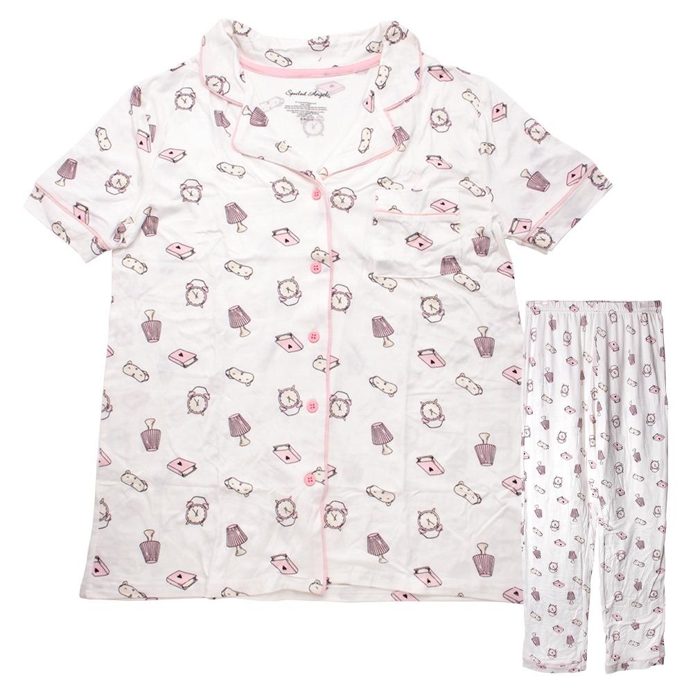 CUTE ANIMAL PATTERN SHORT SLEEVE SHIRT WITH PANTS 2 PC PAJAMA SET