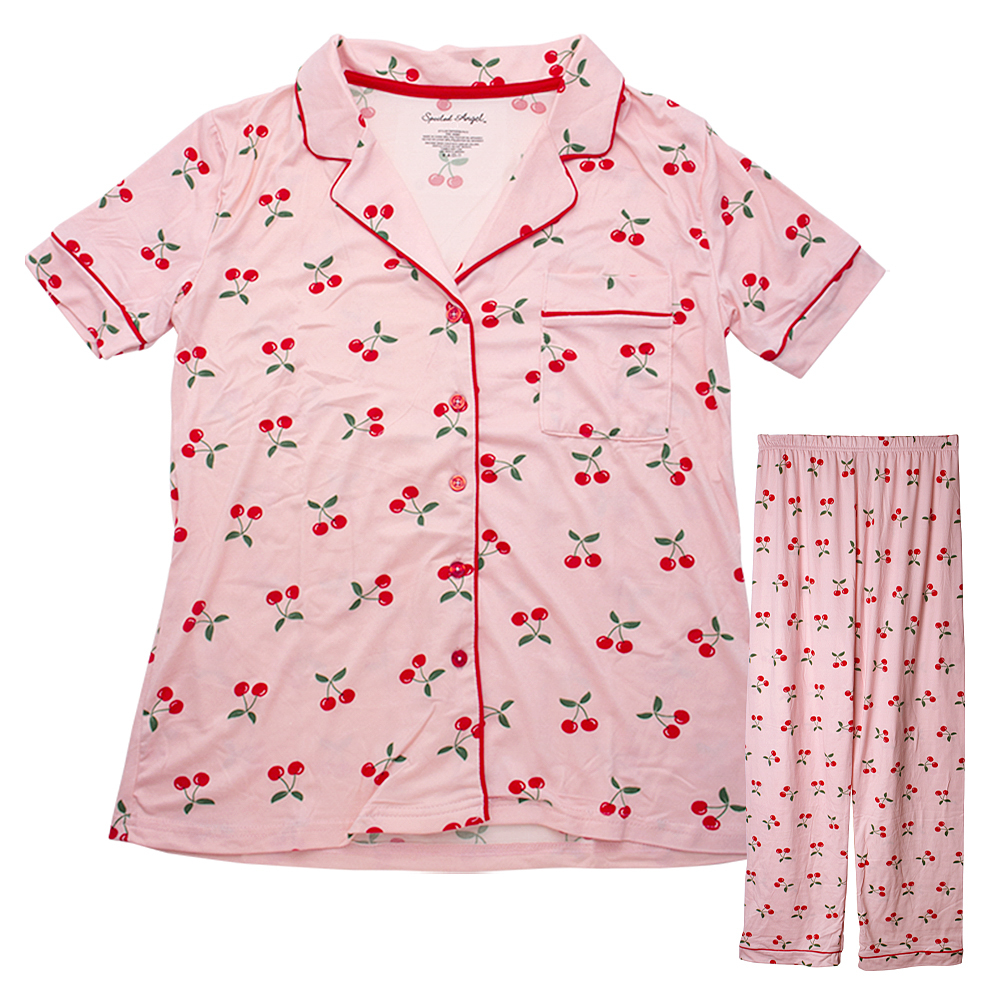 STRAWBERRY PATTERN SHORT SLEEVE SHIRT WITH PANTS 2 PC PAJAMA SET