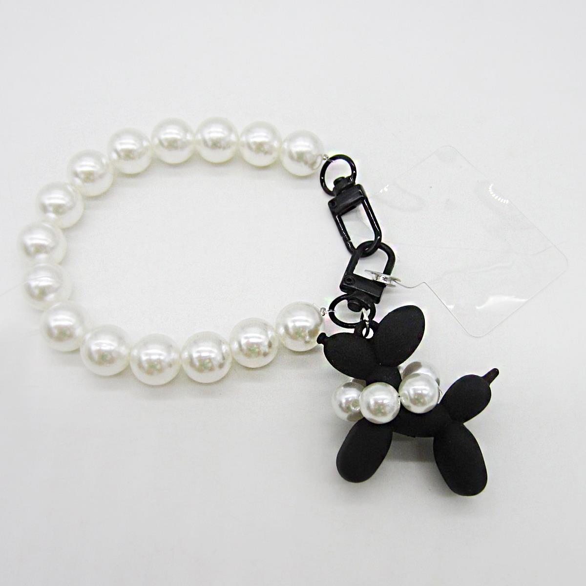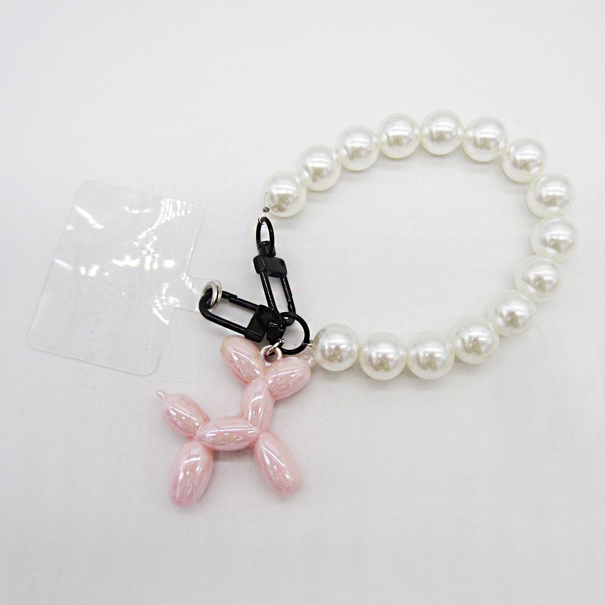 DOG CHARM PEARL BEAD PHONE HOLDER
