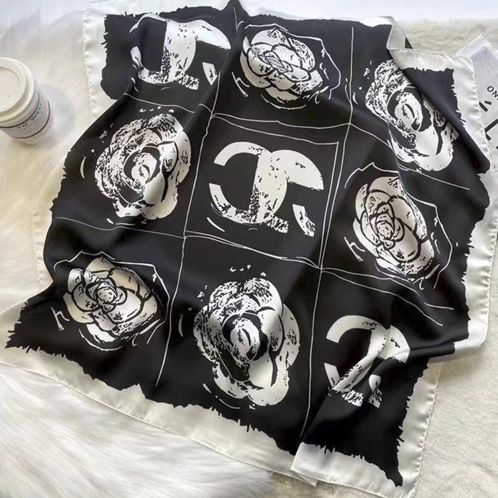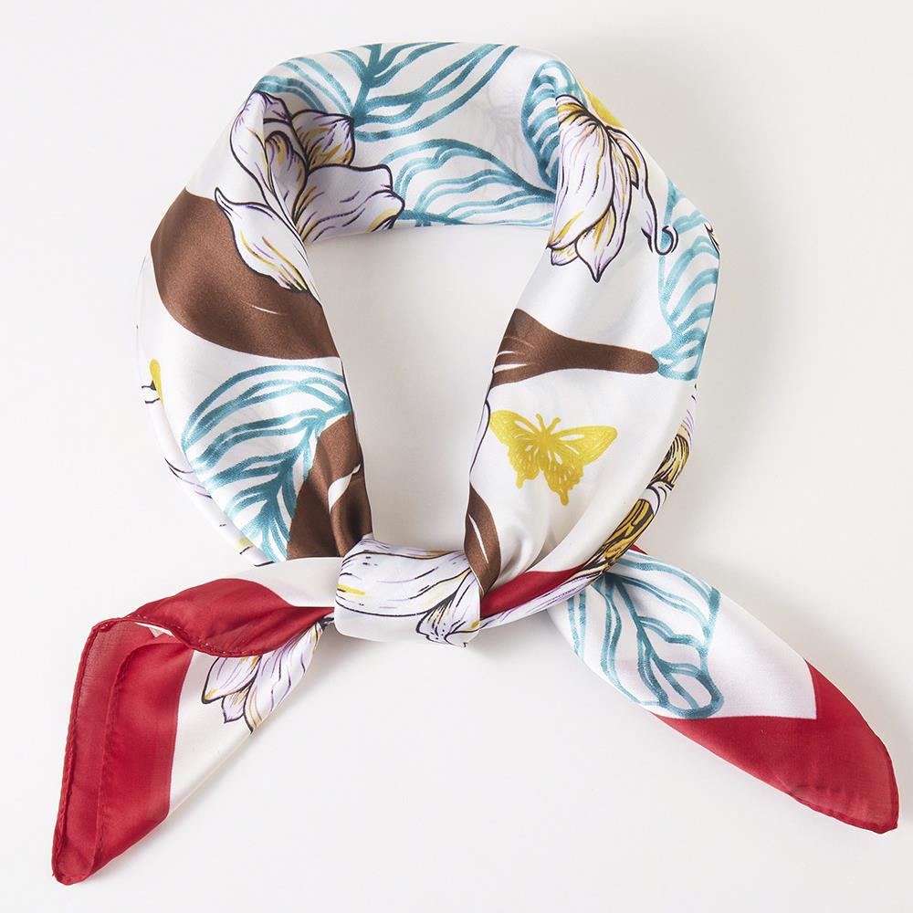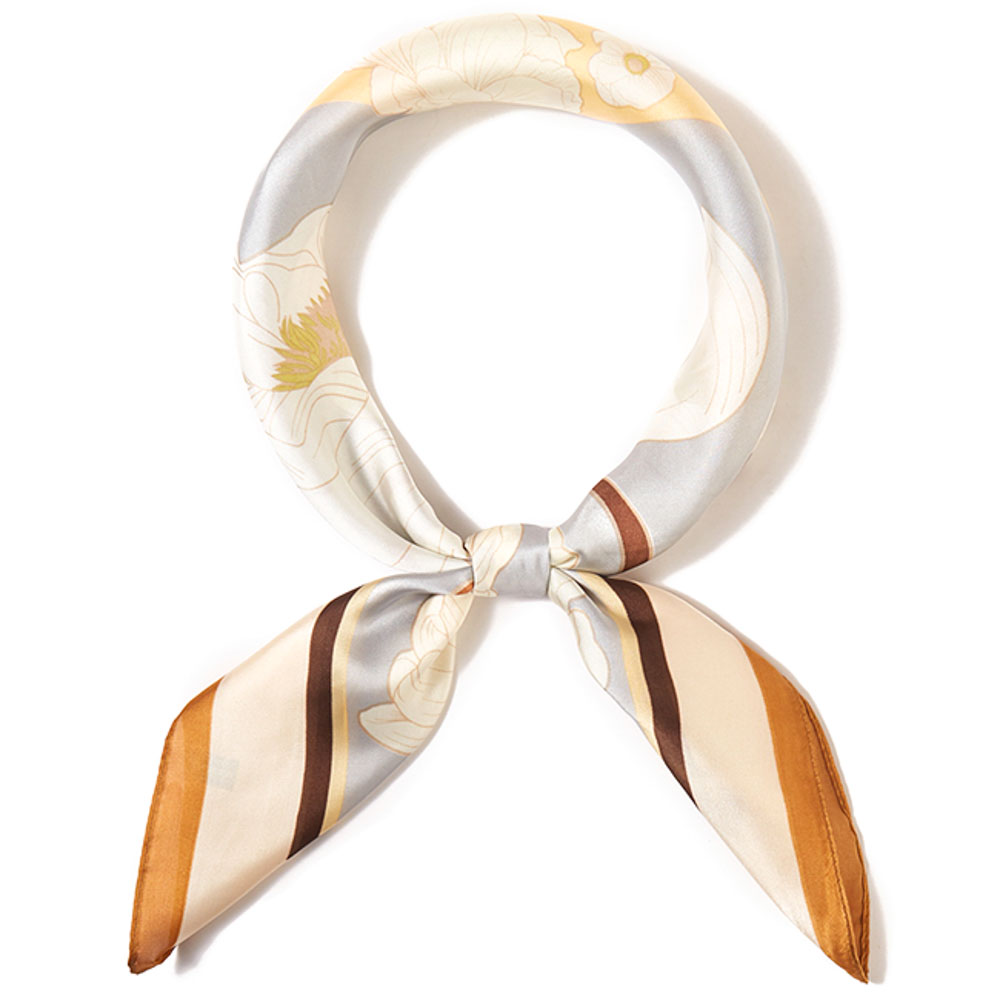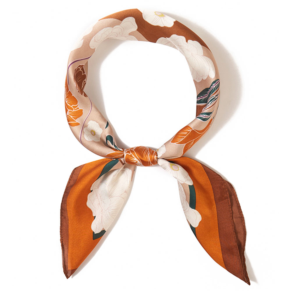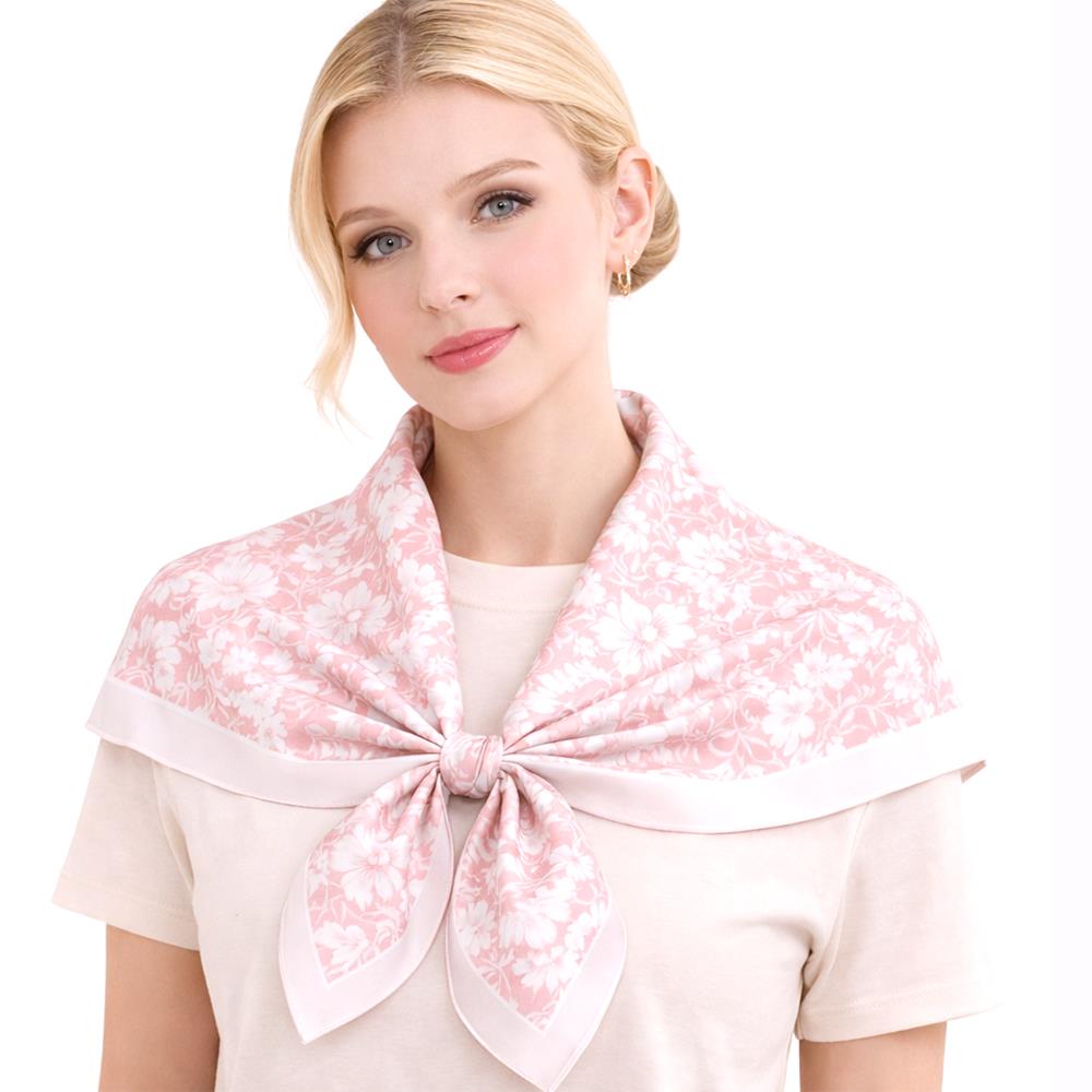 FLOWER SILKY BANDANA SQUARE NECK SCARF