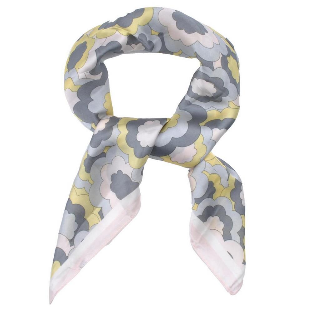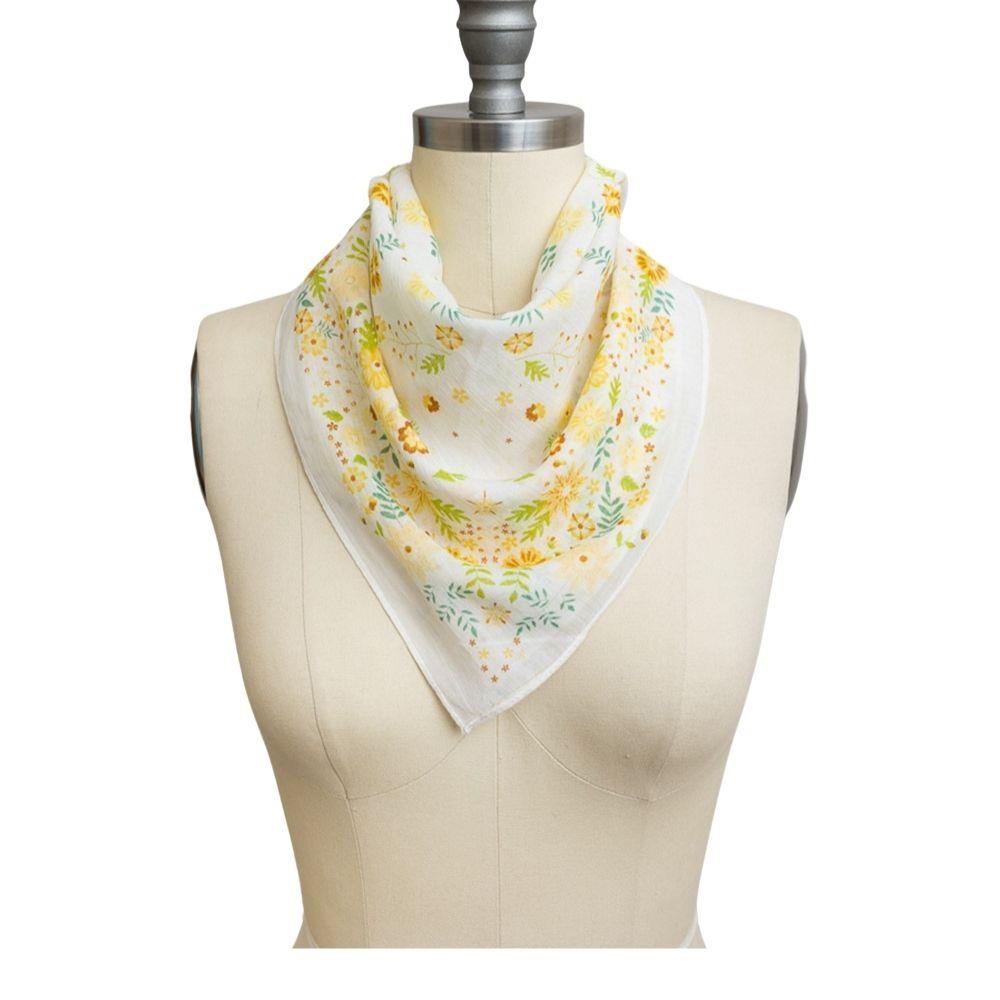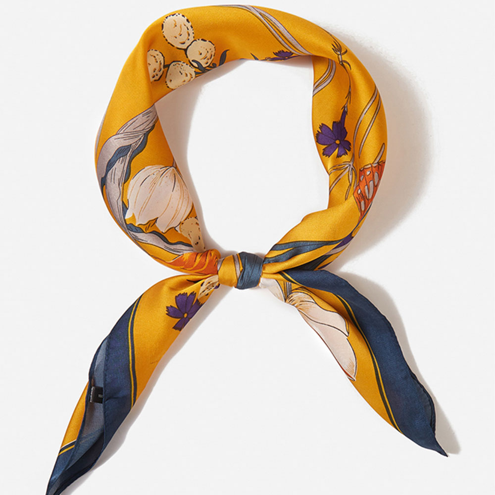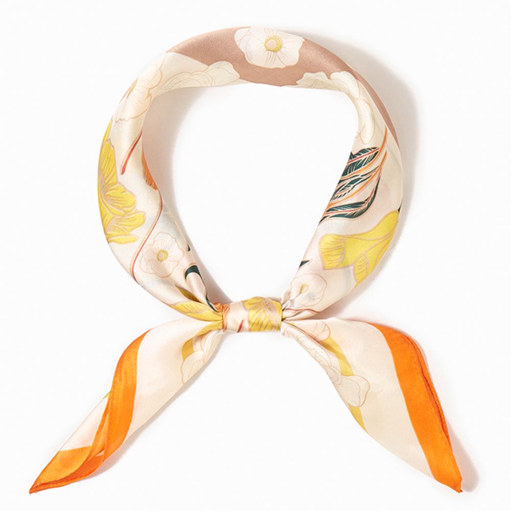 LEMON BLOSSOM PRINT SILKY BANDANA SQUARE NECK SCARF