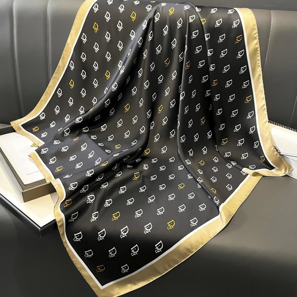 PLEATED MONOGRAM PATTERN SILKY NECK BANDANA SQUARE SCARF