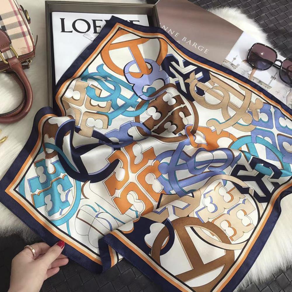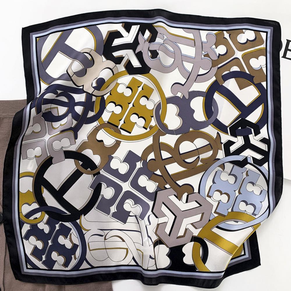GEOMETRIC ABSTRACT SQUARE PATTERN SILKY BANDANA SQUARE NECK SCARF