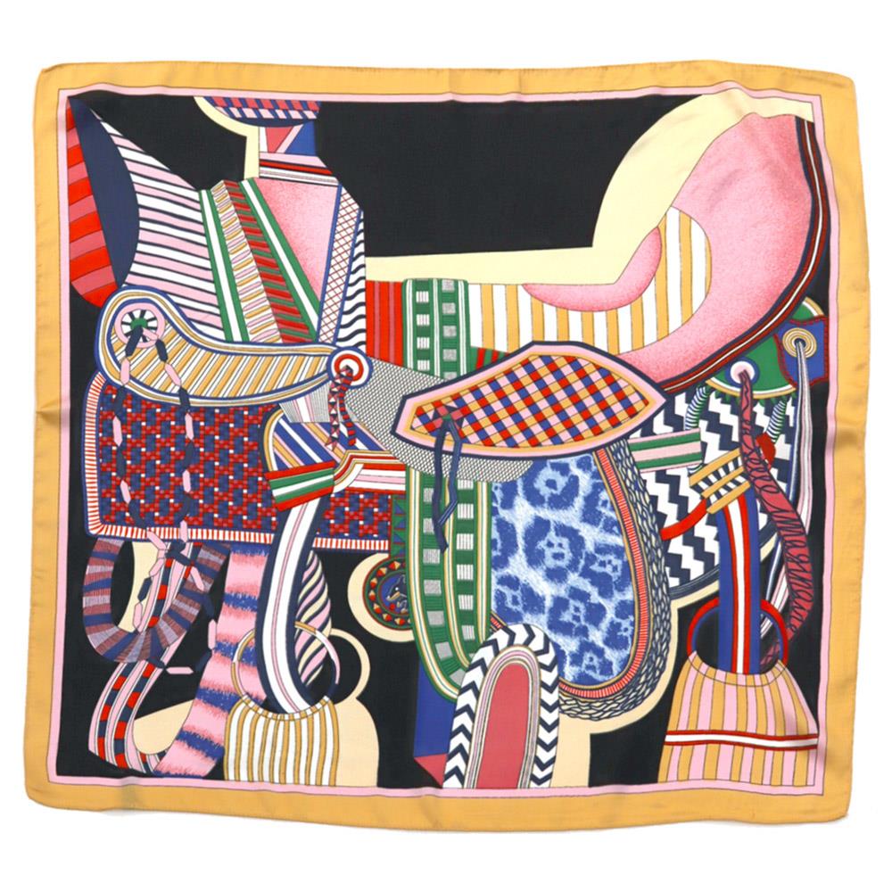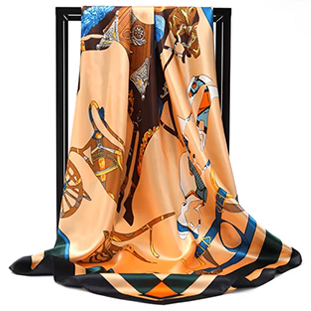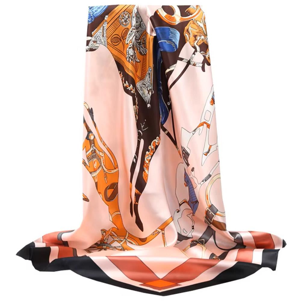 MEDALLION HORSE MOTIF SILKY BANDANA SQUARE NECK SCARF