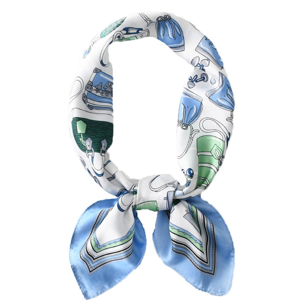 FLOWER CHAIN PRINT SILKY BANDANA SQUARE NECK SCARF