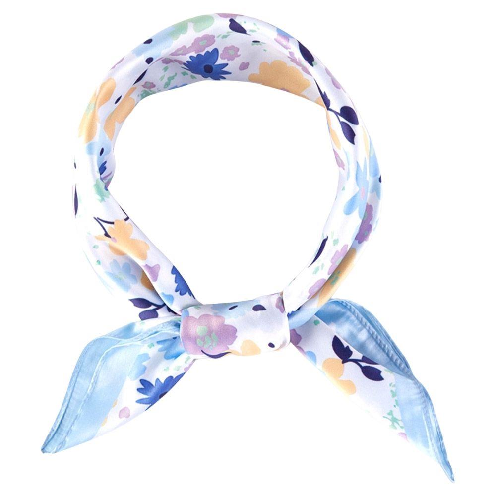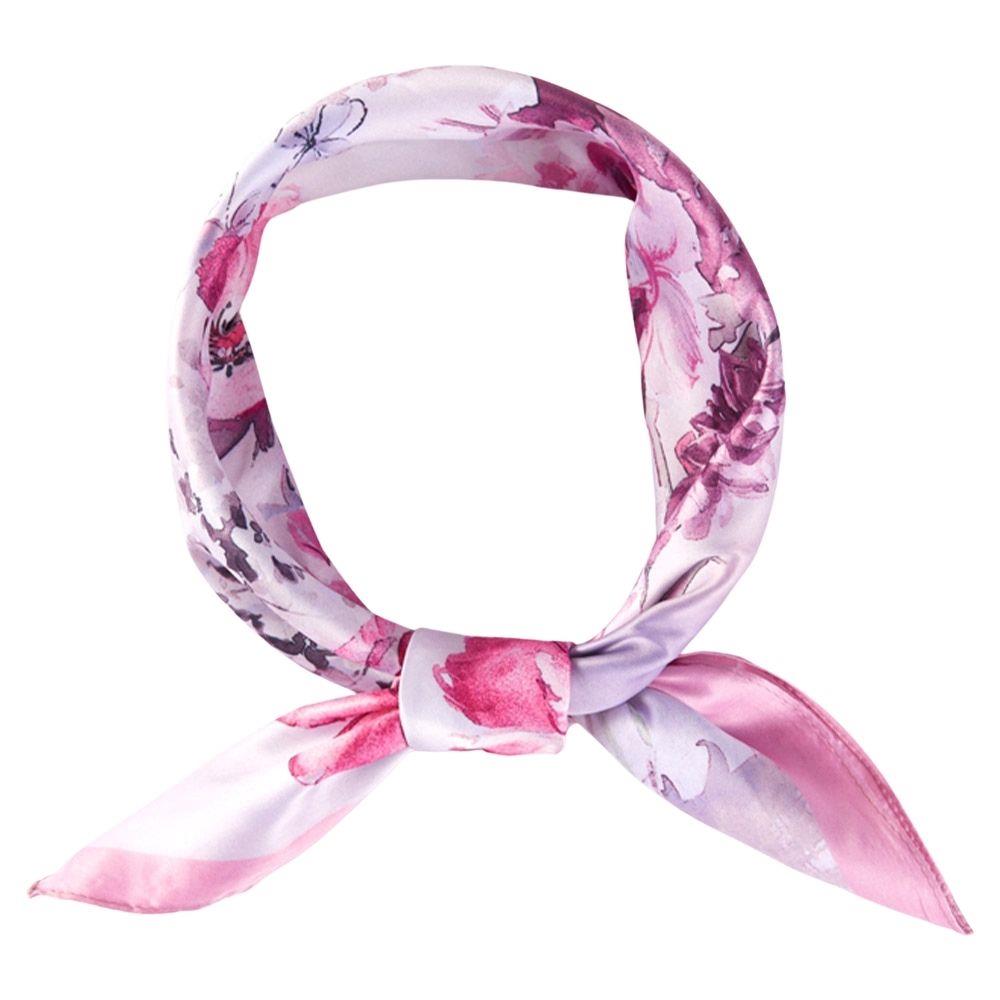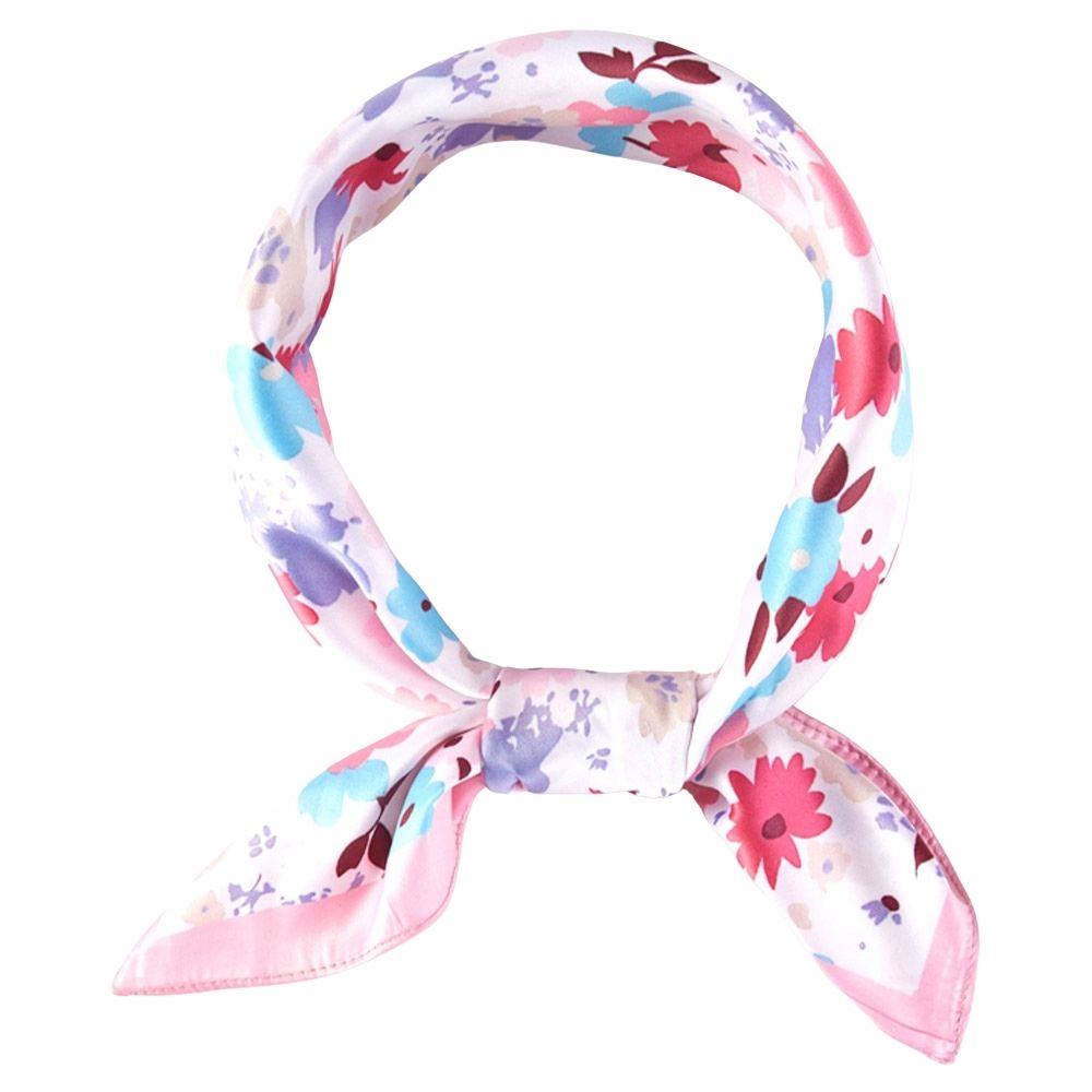 FLORAL PATTERN BANDANA SQUARE SILKY NECK SCARF