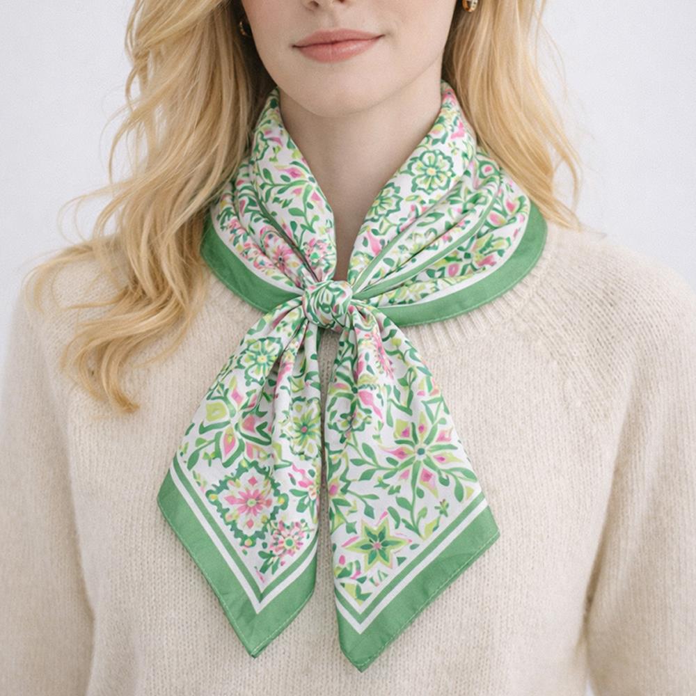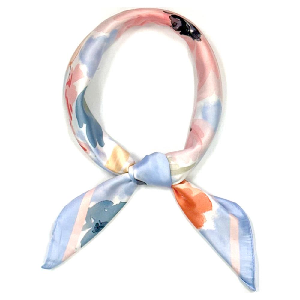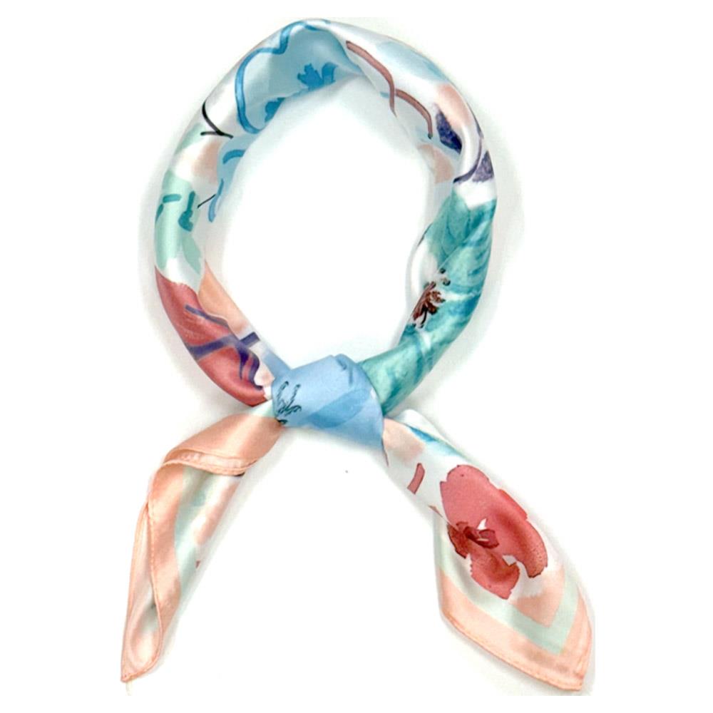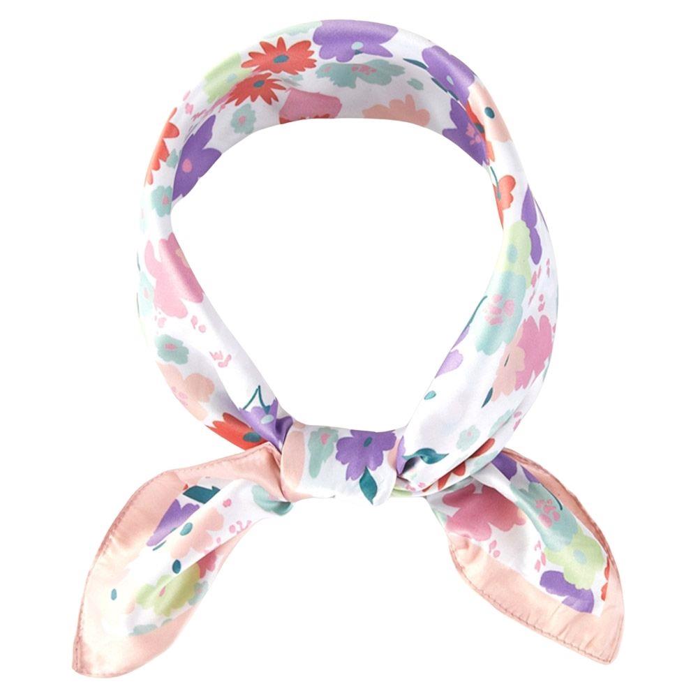SPRING TULIP FLORAL PRINT SILKY BANDANA SQUARE NECK SCARF