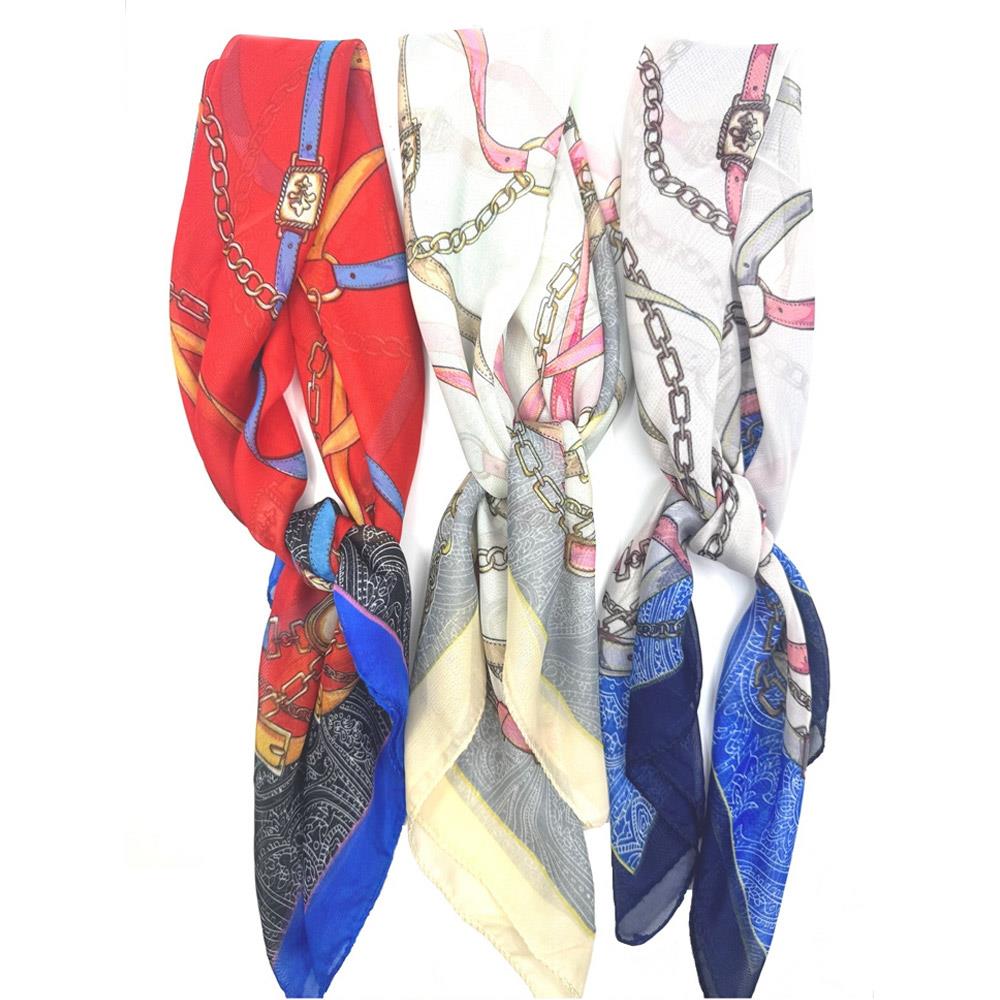 BELT PATTERN SILKY BANDANA SQUARE SCARF
