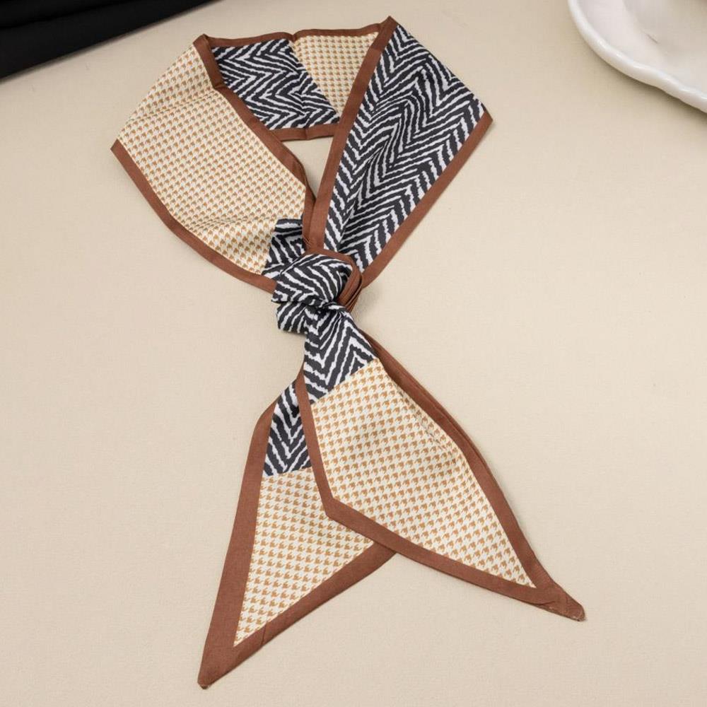 GEOMETRIC MIX PRINT SILKY BANDANA SKINNY NECK SCARF