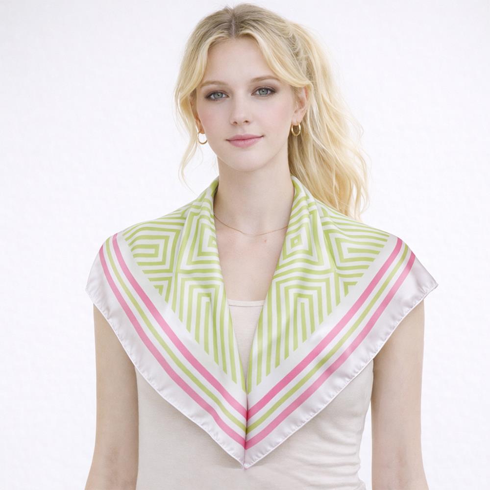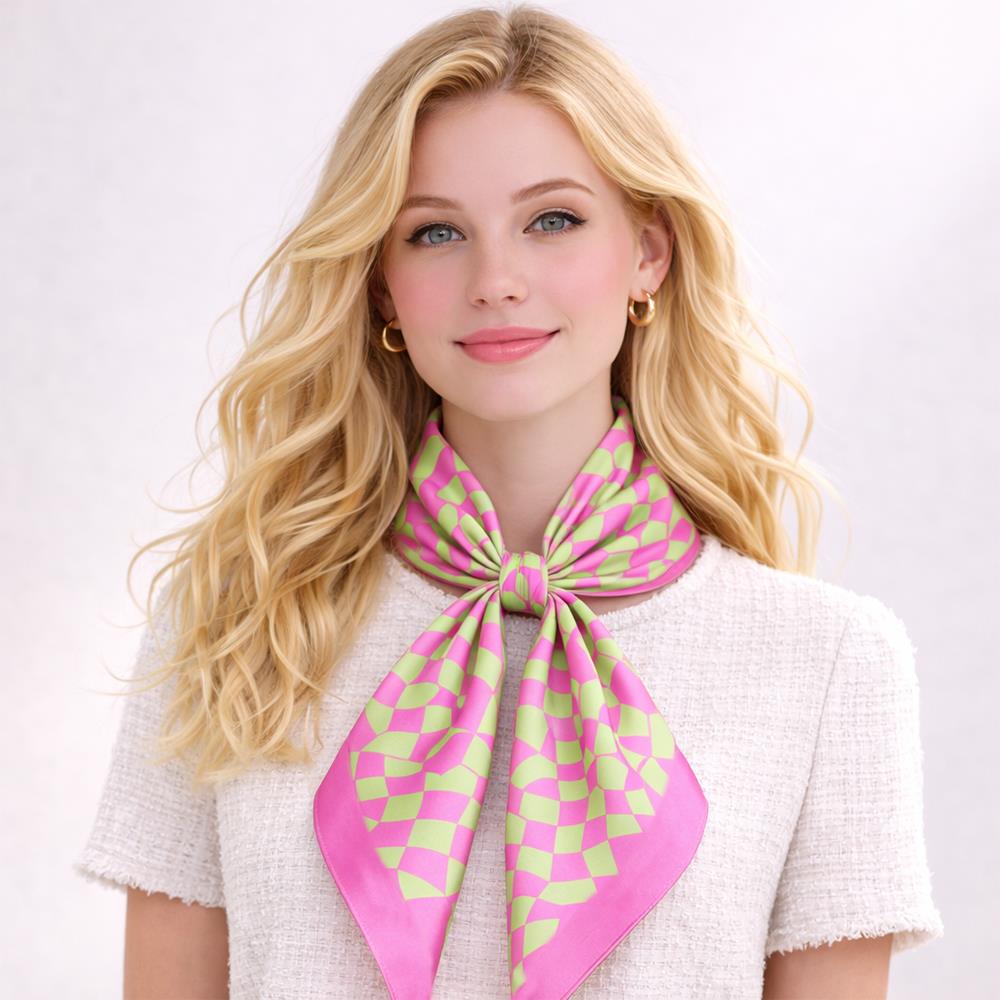 GEOMETRIC DIAMOND REPEAT PATTERN SILKY BANDANA NECK SCARF