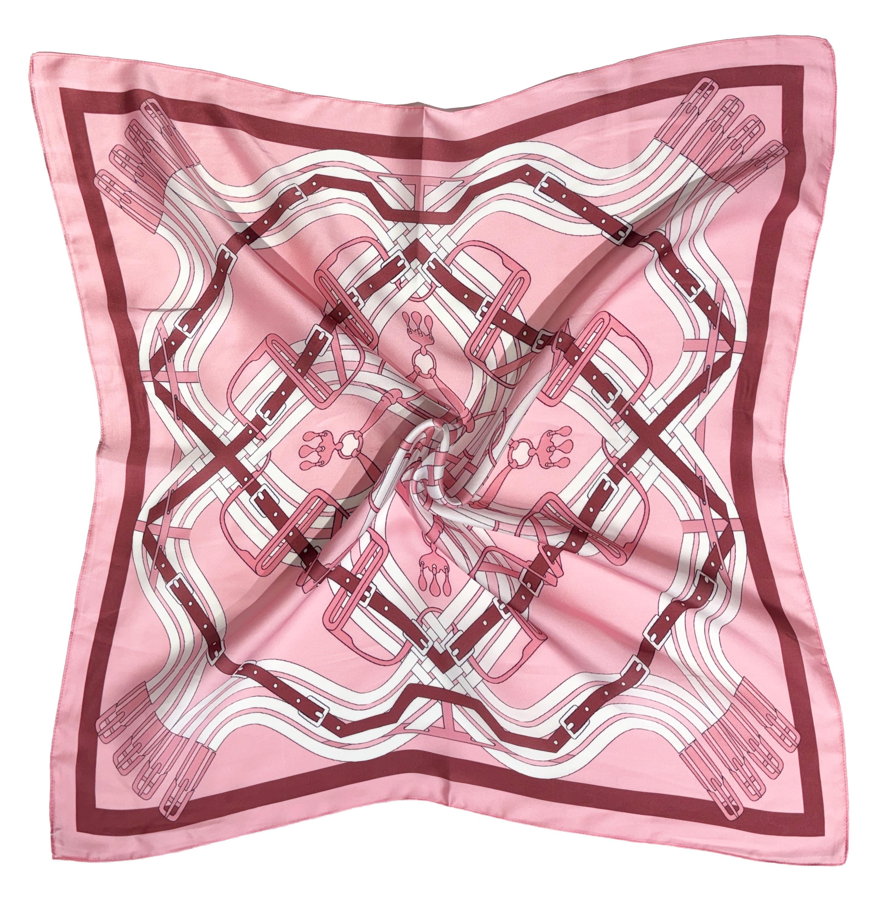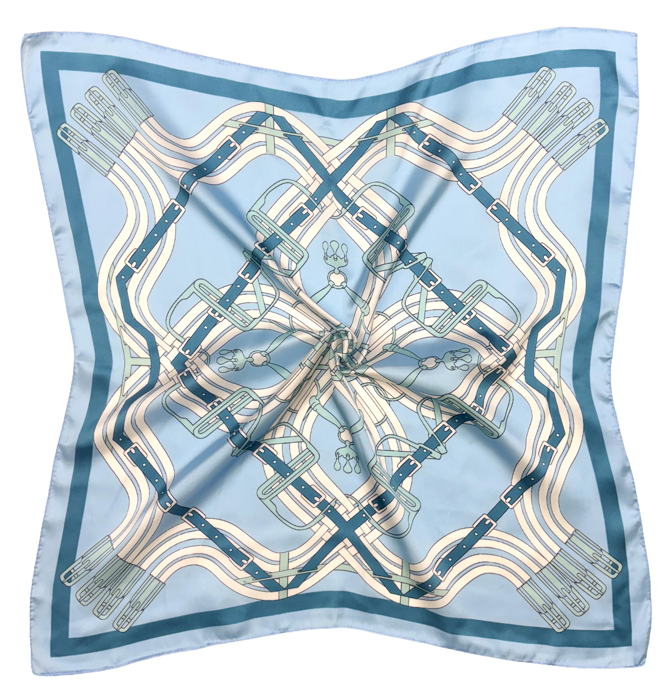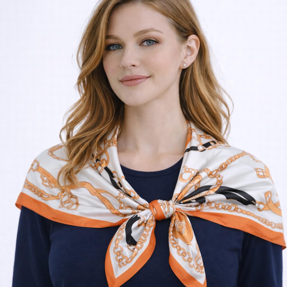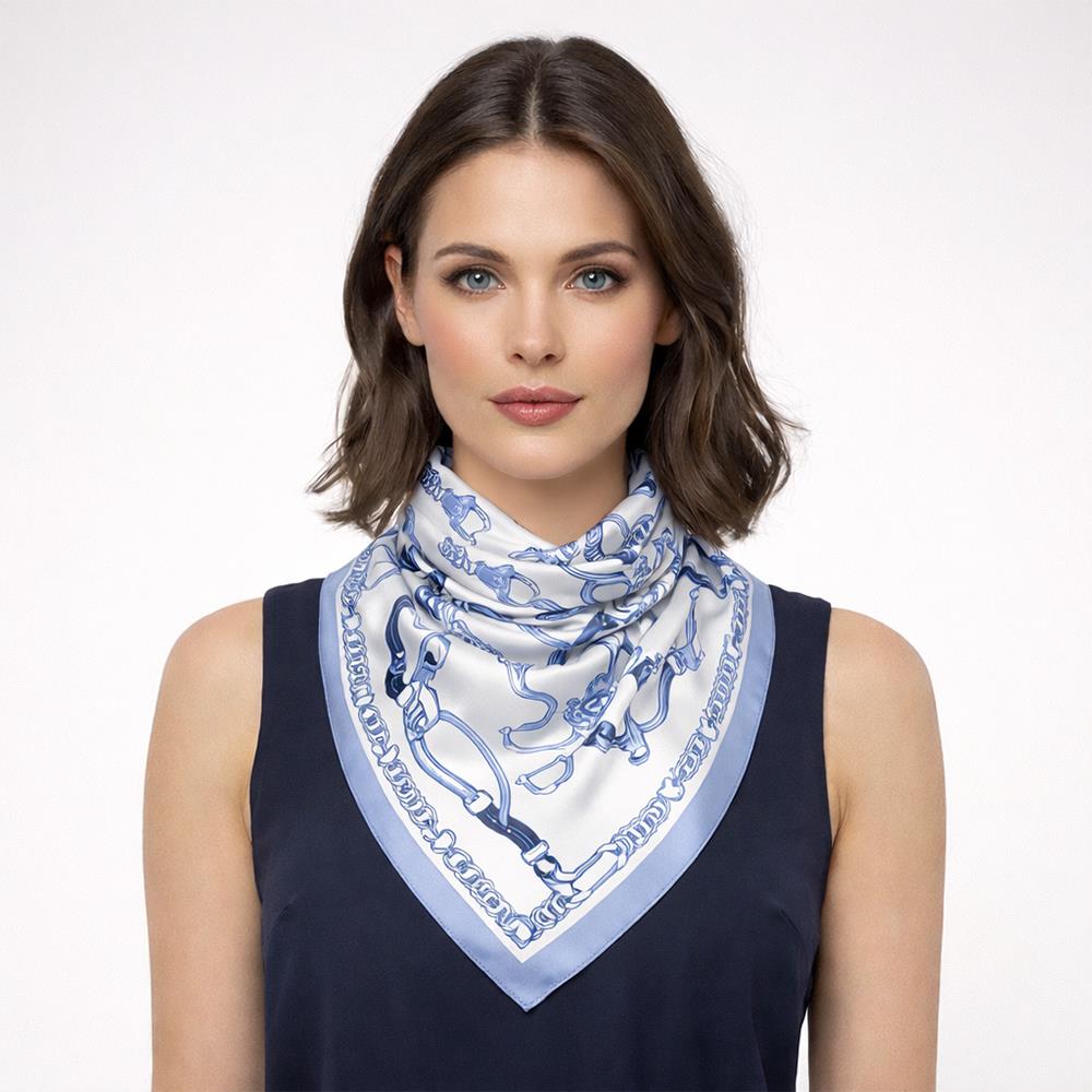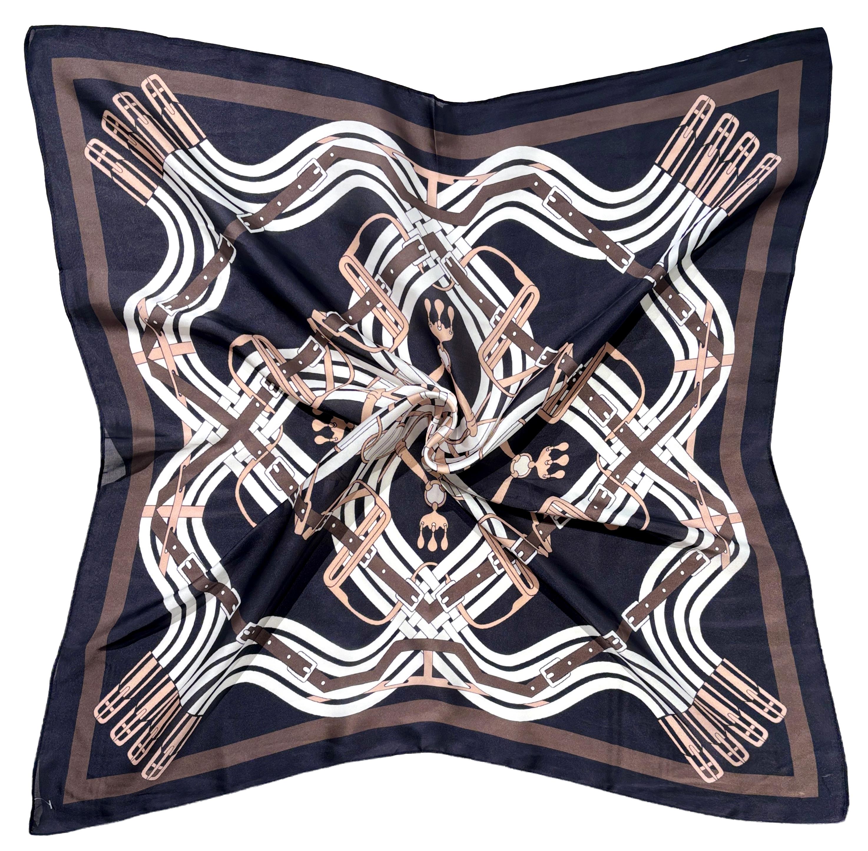 EQUESTRIAN PATTERN SILKY BANDANA SQUARE NECK SCARF