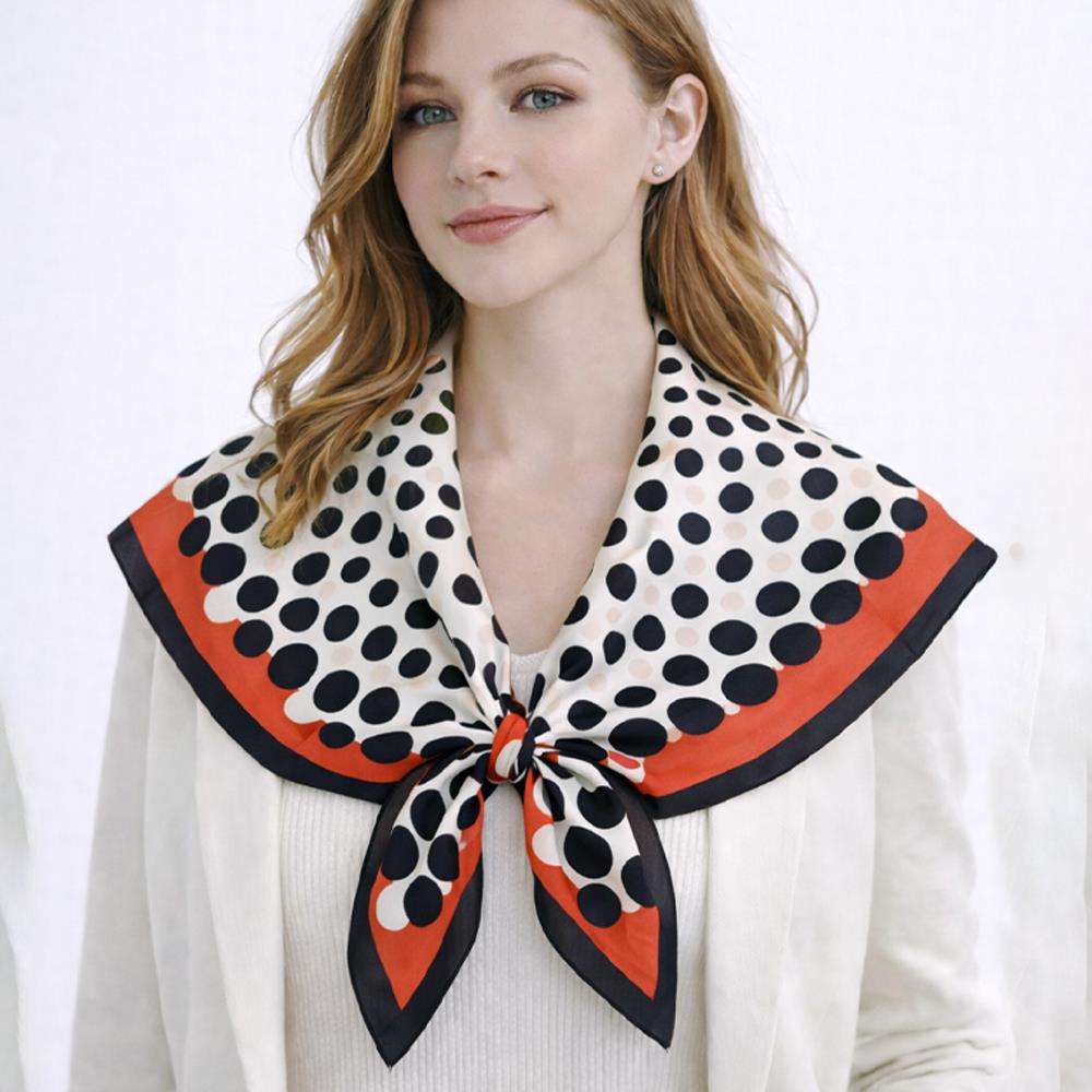 POLKA DOT SILKY BANDANA SQUARE NECK SCARF