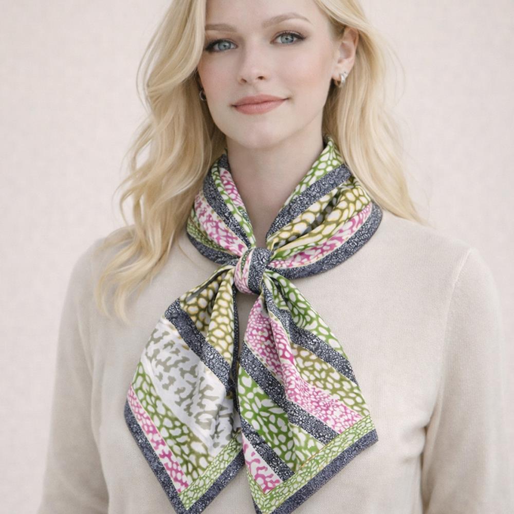 MULTI PATTERN SILKY BANDANA SQUARE NECK SCARF