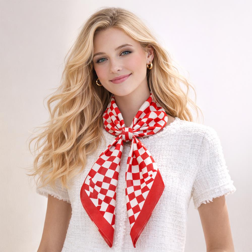 GEOMETRIC CROSS CHECKED FRAME PATTERN SILKY BANDANA NECK SCARF