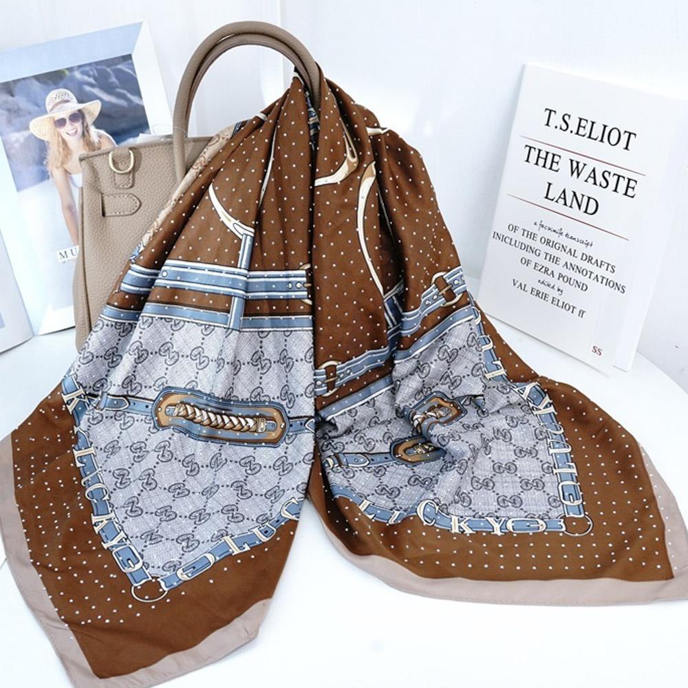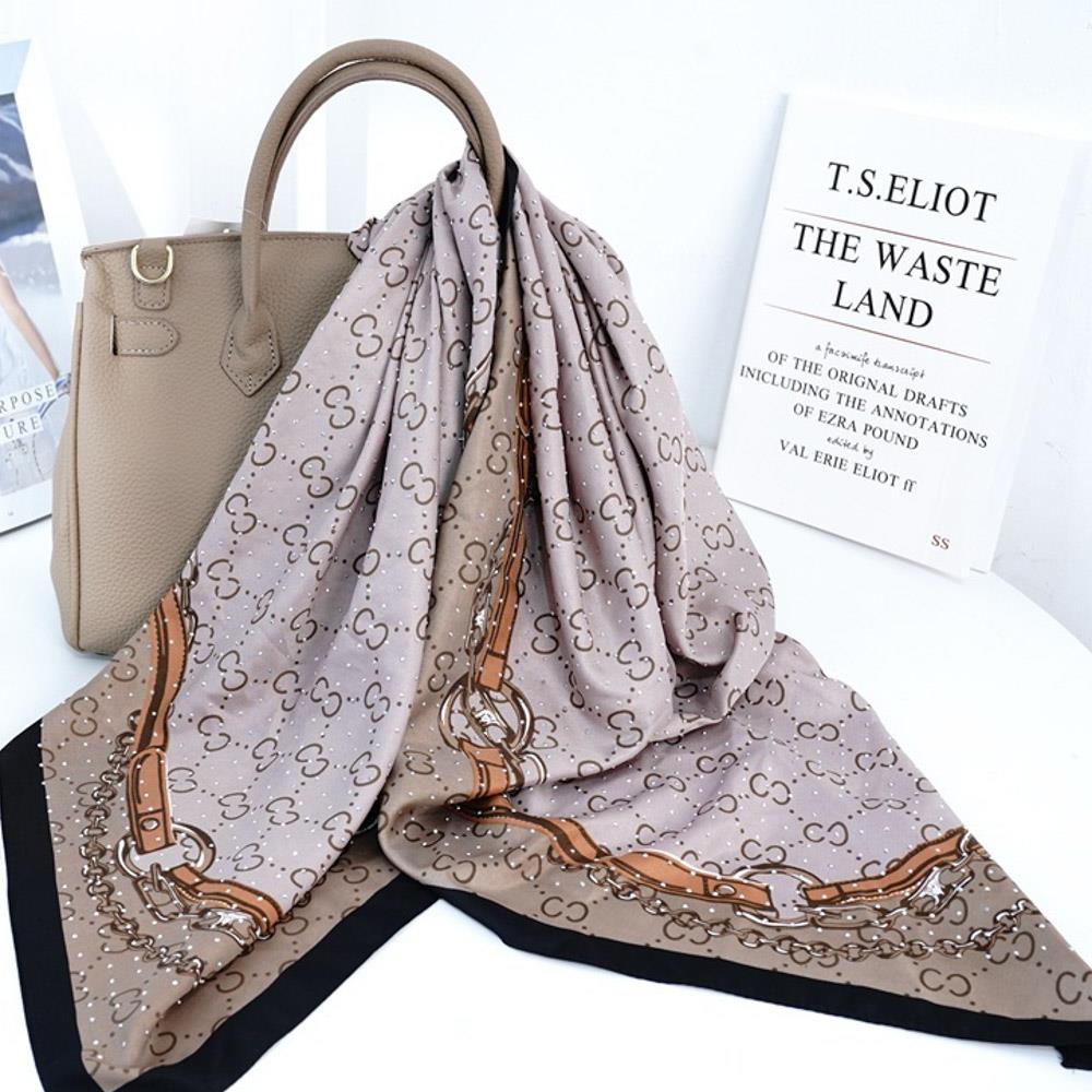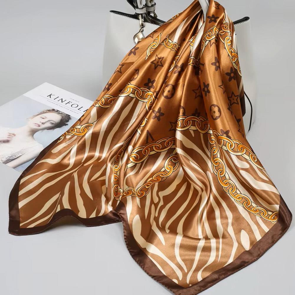 CHAIN ORNAMENT PRINT PATTERN SILKY BANDANA NECK SCARF