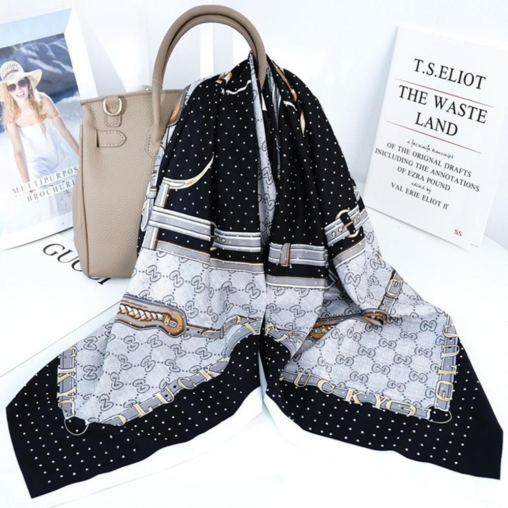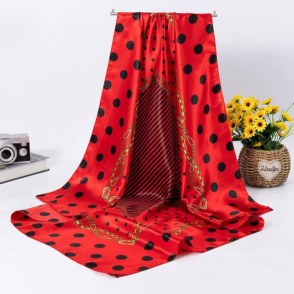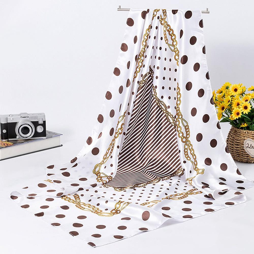 POLKA DOT CHAIN SILKY BANDANA SQUARE NECK SCARF