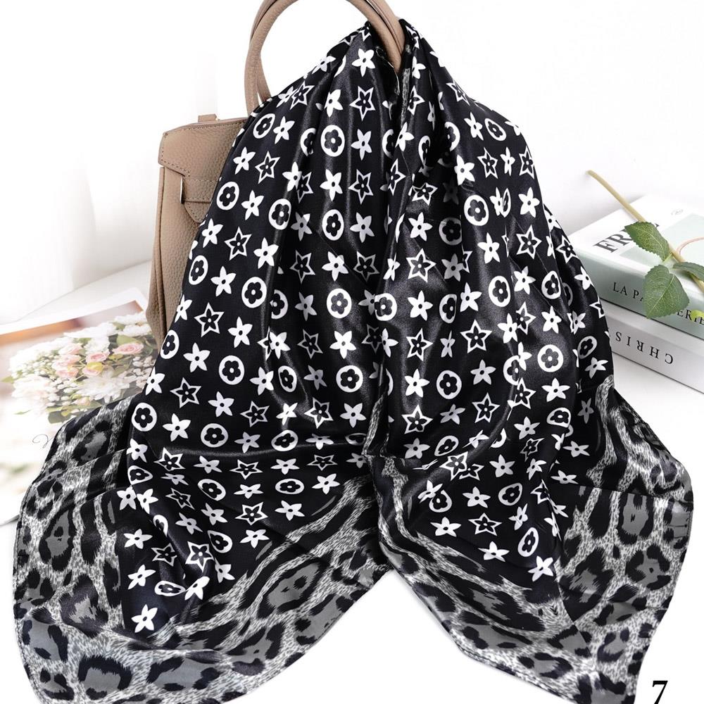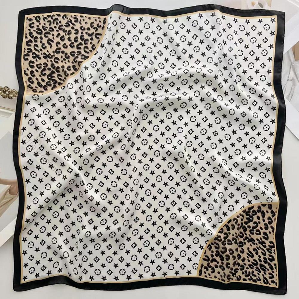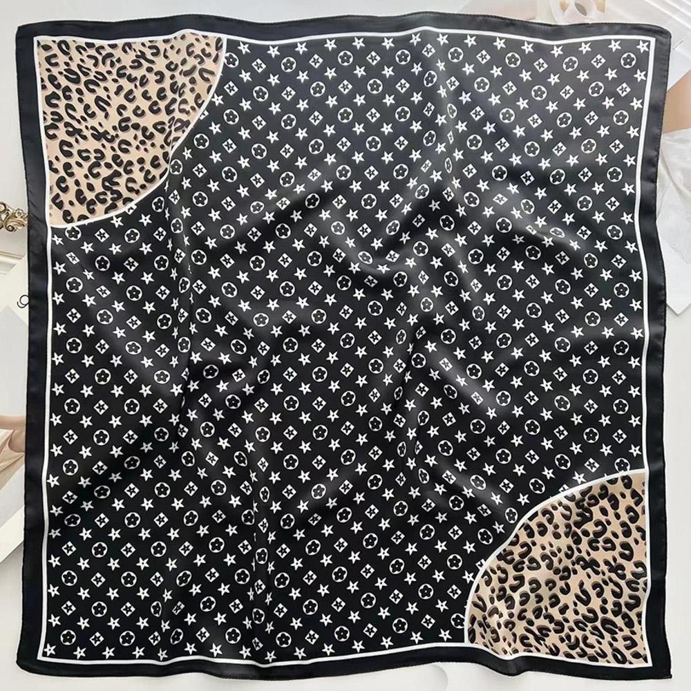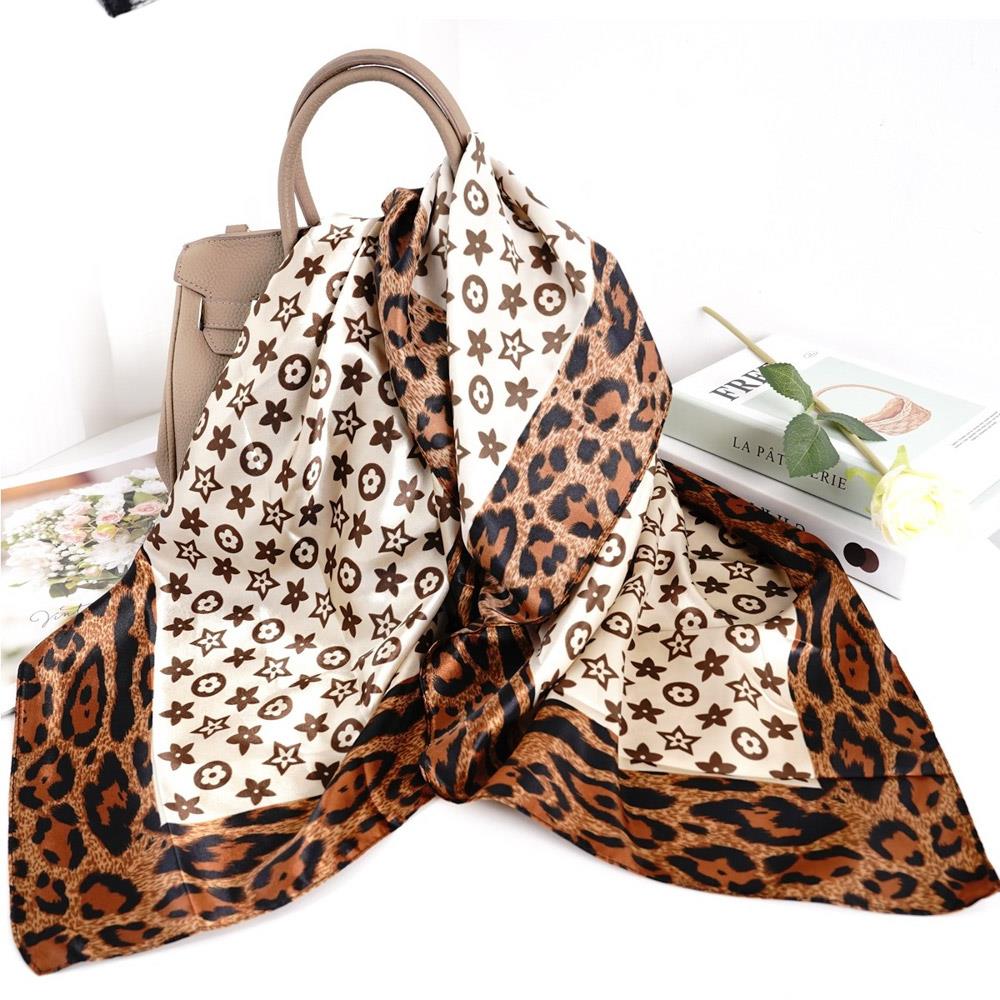 LEOPARD FLOWER PATTERN SILKY BANDANA SQUARE NECK SCARF