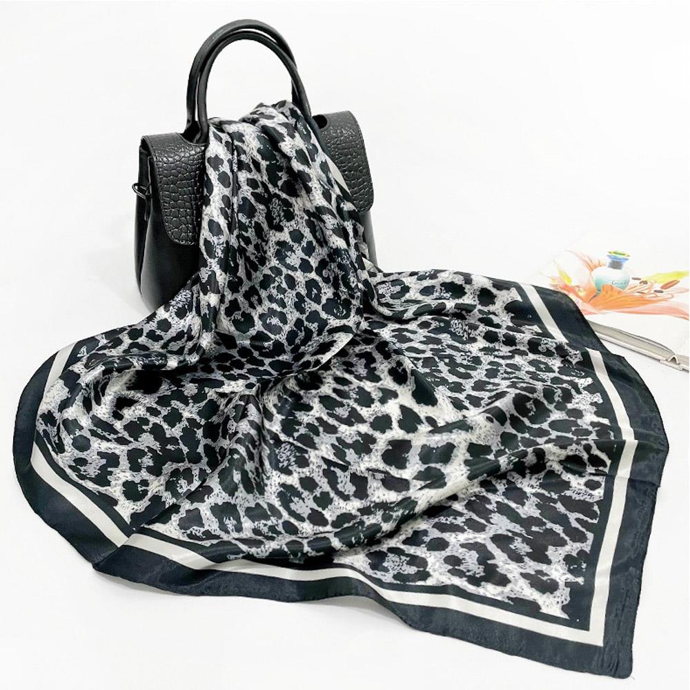 SILKY LEOPARD PATTERN BANDANA SQUARE NECK SCARF