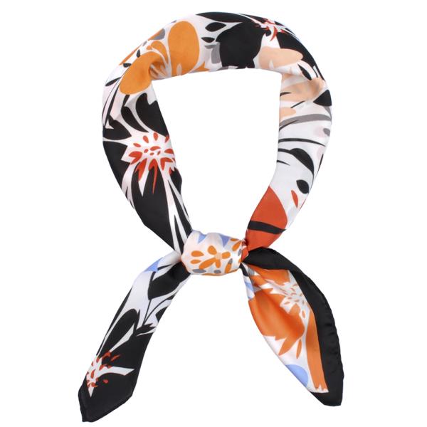 LARGE FLORAL OUTLINE PRINT SILKY BANDANA SQUARE NECK SCARF