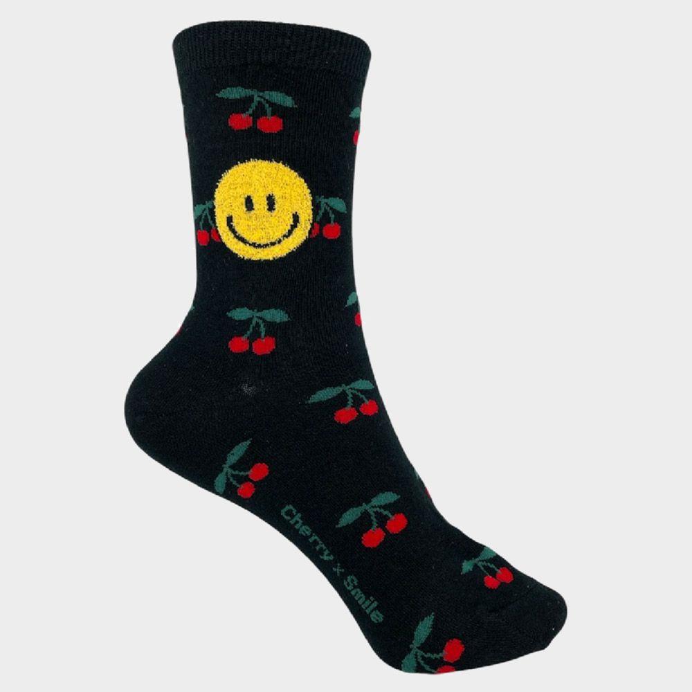 CUTE PATTERNED SOCKS WITH HAPPY FACE AND FRUIT DESIGNS 1 PAIR