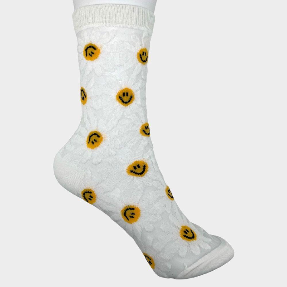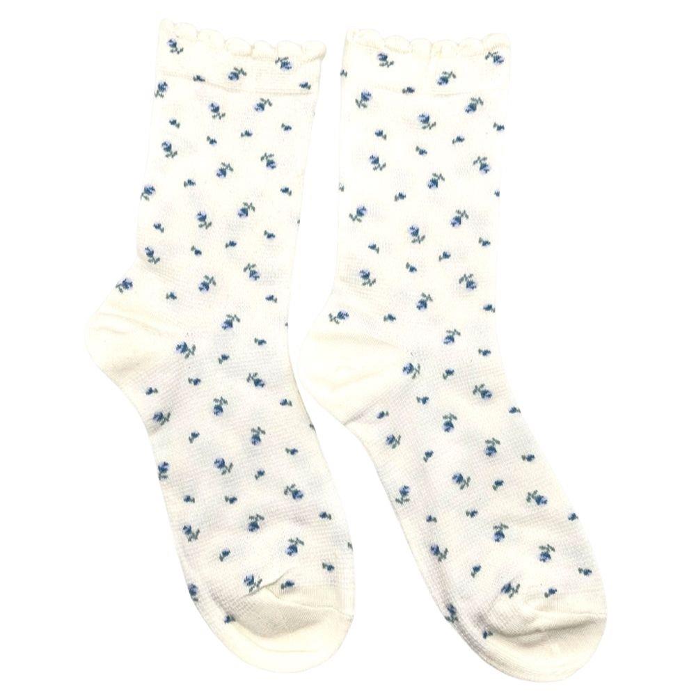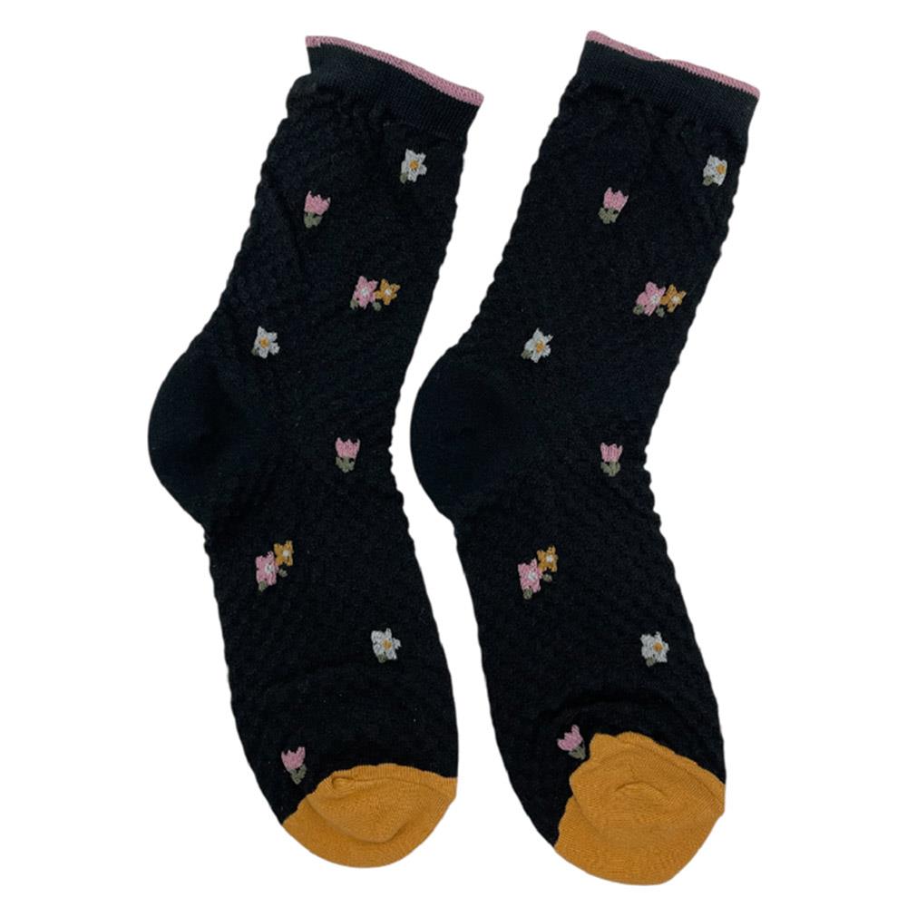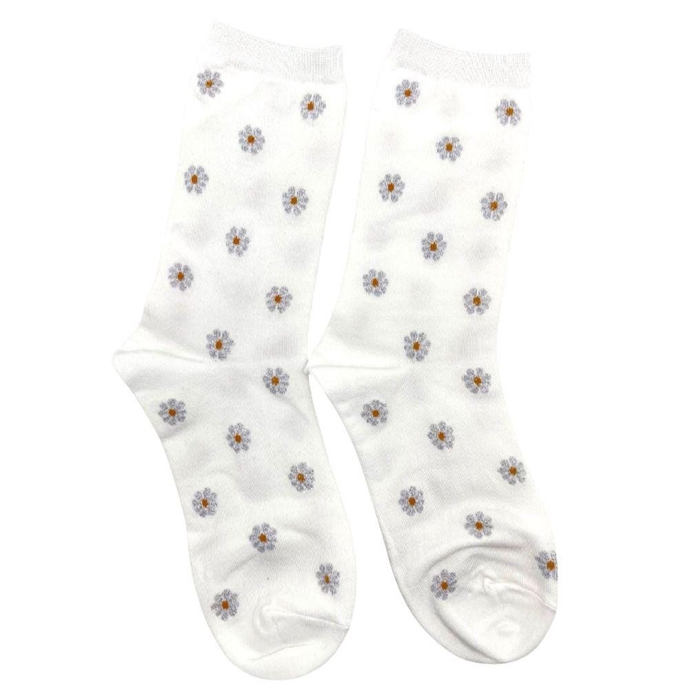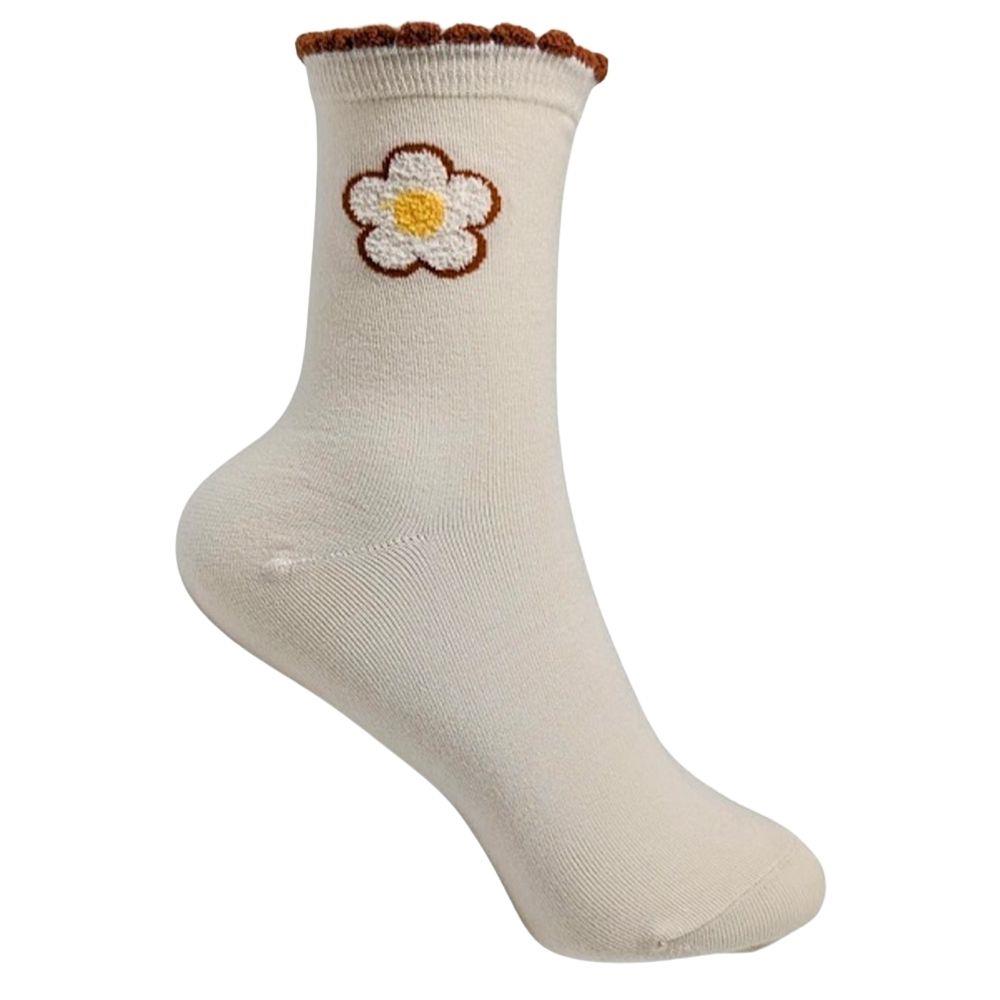 DAISY FLOWER EMBROIDERED CREW SOCKS